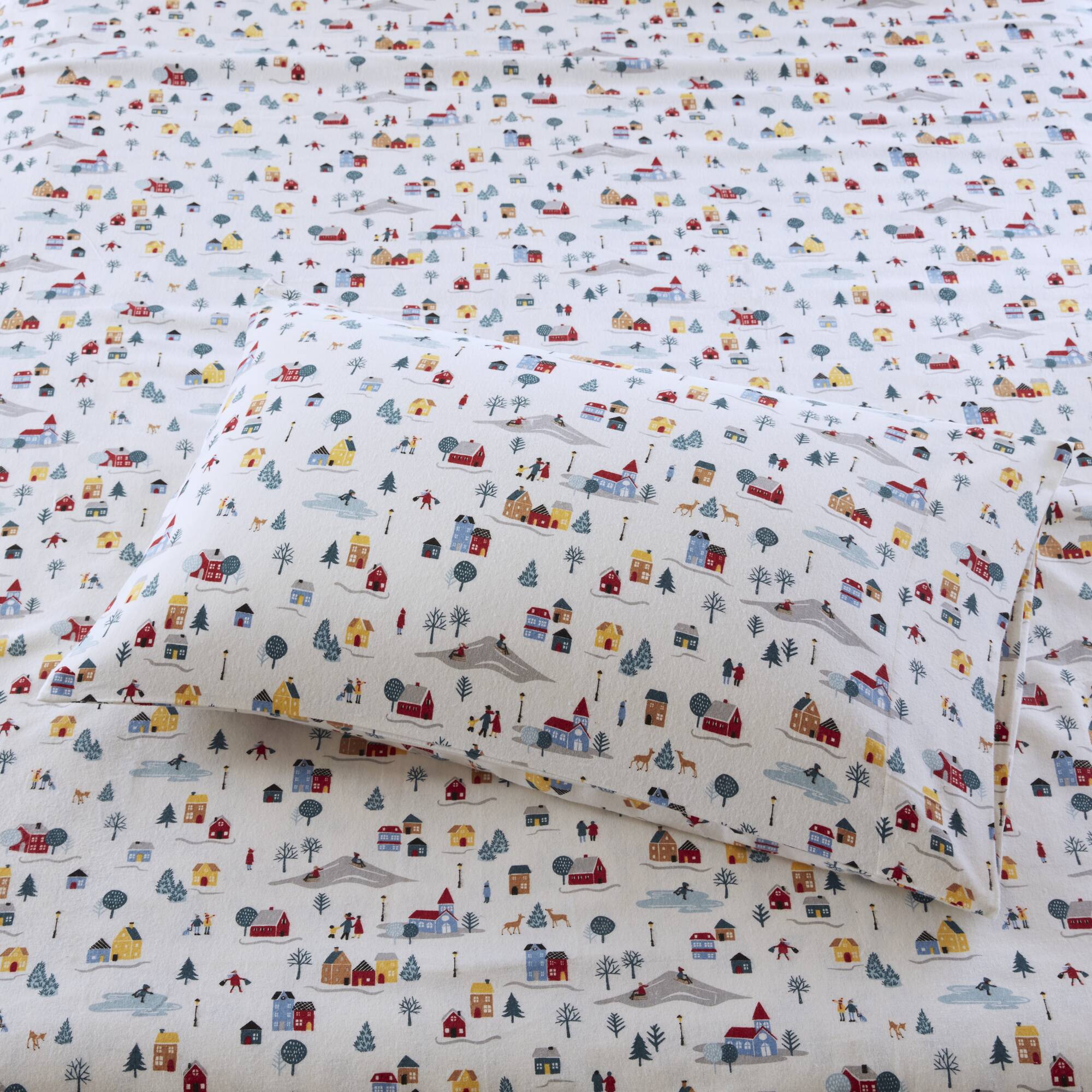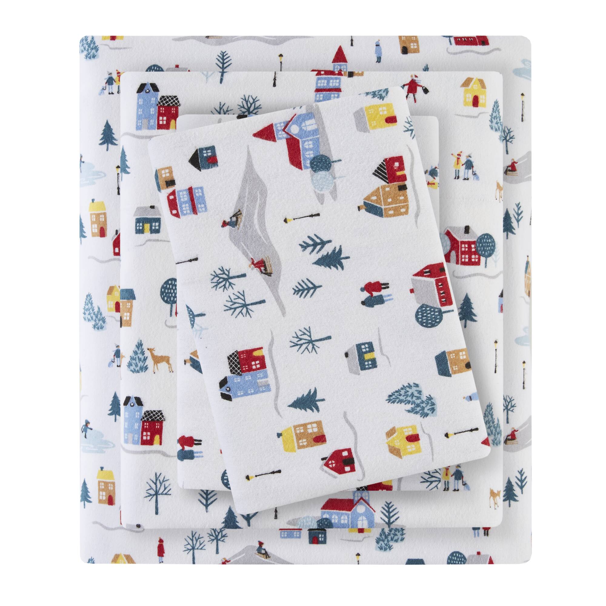 Wrap your bedroom in cozy, timeless comfort with this 4-piece California King printed sheet set. Crafted from soft 100% cotton flannel, the set combines warmth and breathability with a classic white village print—ideal for cooler nights or year-round layering. Designed to fit California King mattresses and provide a polished, coordinated look for your bed.