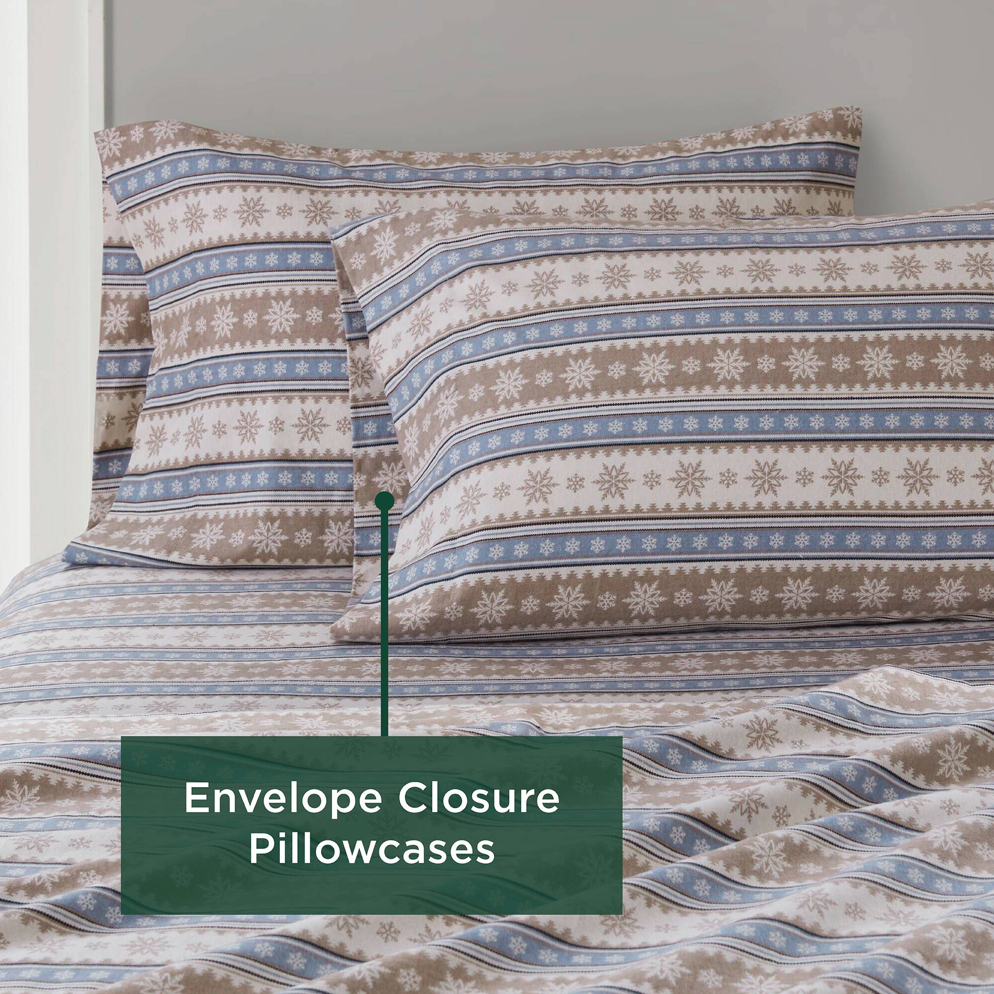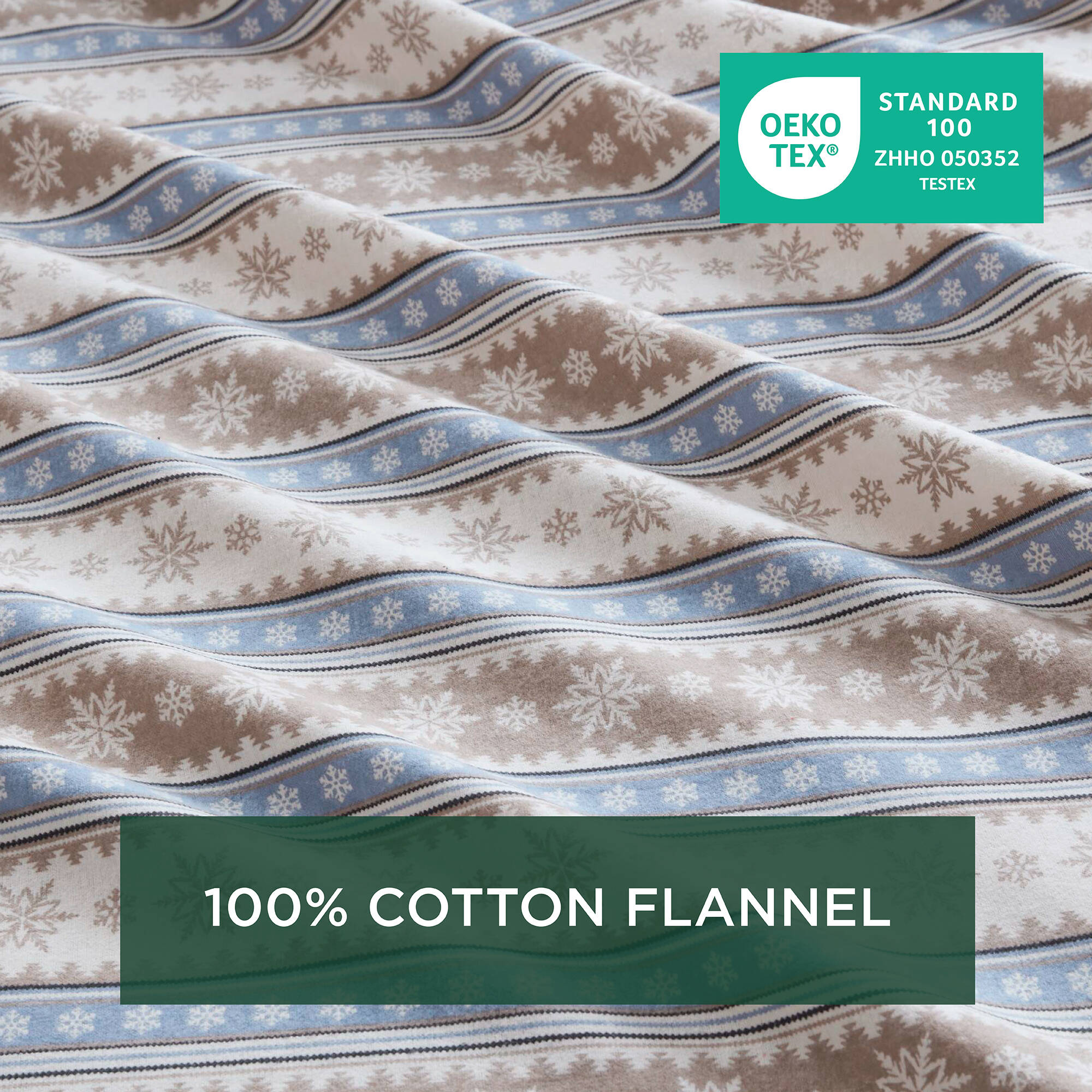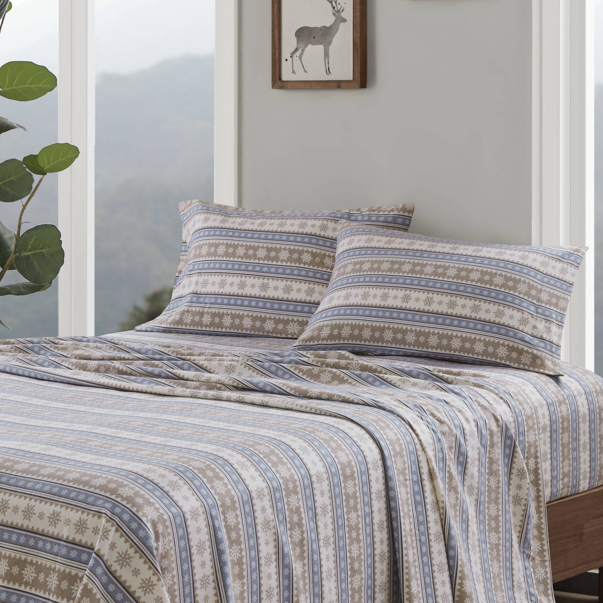 Brighten your bedroom with this cozy 4-piece blue snowflake sheet set—designed for year-round comfort with a soft, warm cotton flannel weave and a classic winter-inspired pattern. The set includes everything needed to dress a full-size bed, offering a snug fitted sheet, roomy flat sheet, and two matching pillowcases for a coordinated look and extra comfort.