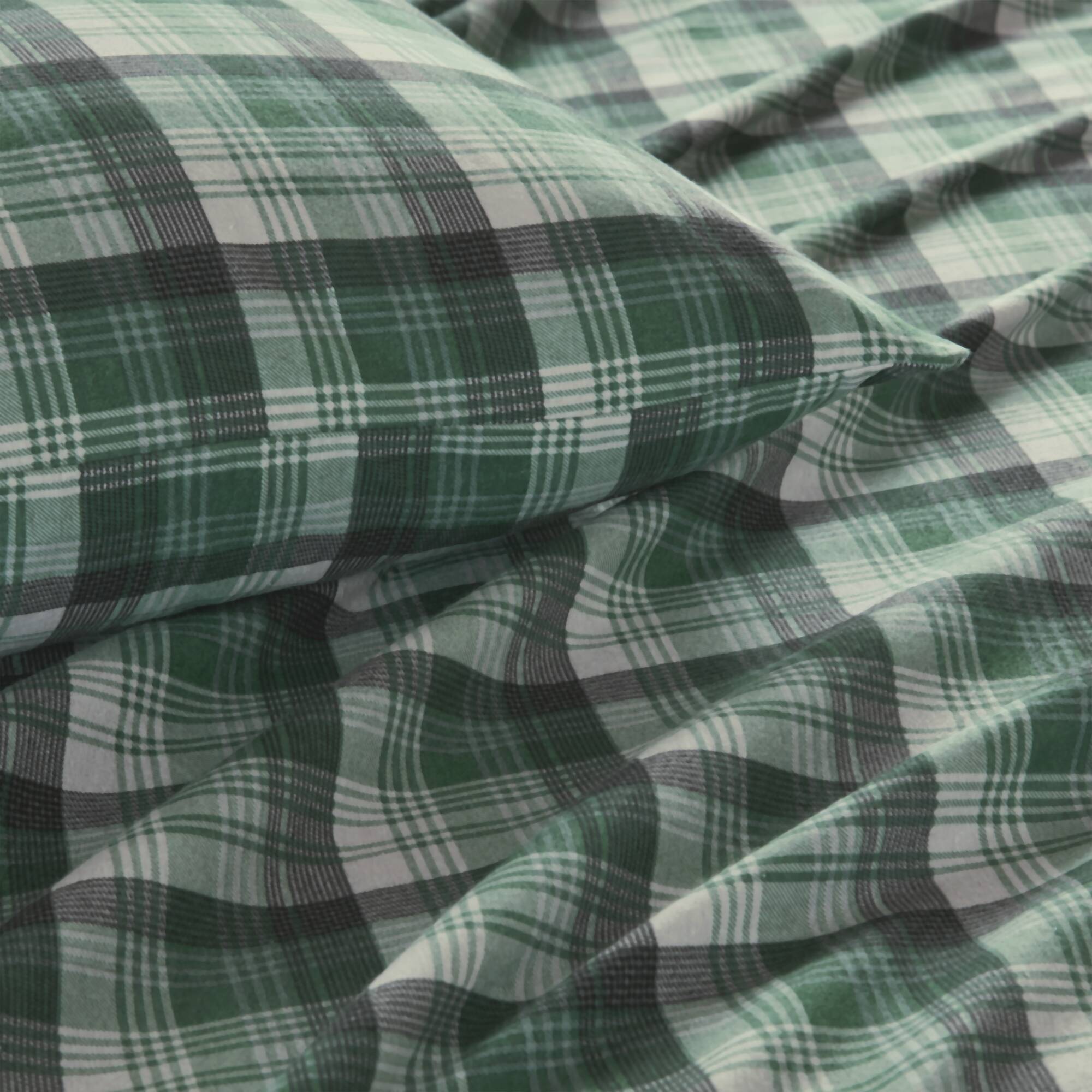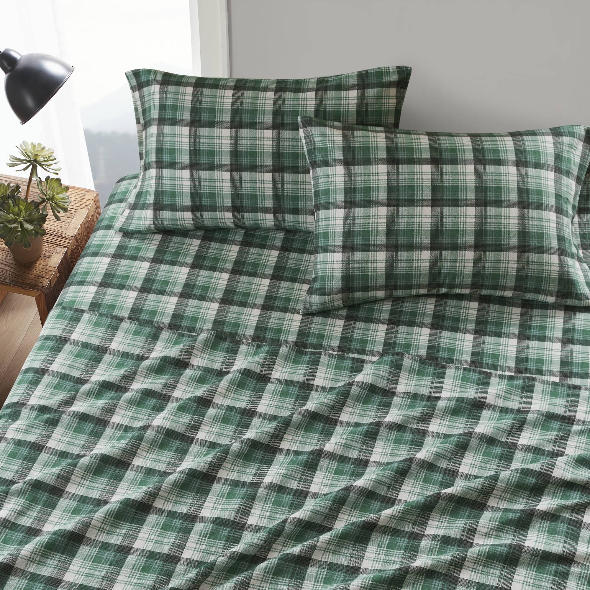 Cozy up your bed with this 4-piece green plaid full sheet set, crafted from warm 100% cotton flannel for a soft, breathable sleep surface and a classic, timeless look. Designed for everyday comfort and easy care, the set includes everything you need to outfit a full-size bed with a coordinated, tucked-in finish.