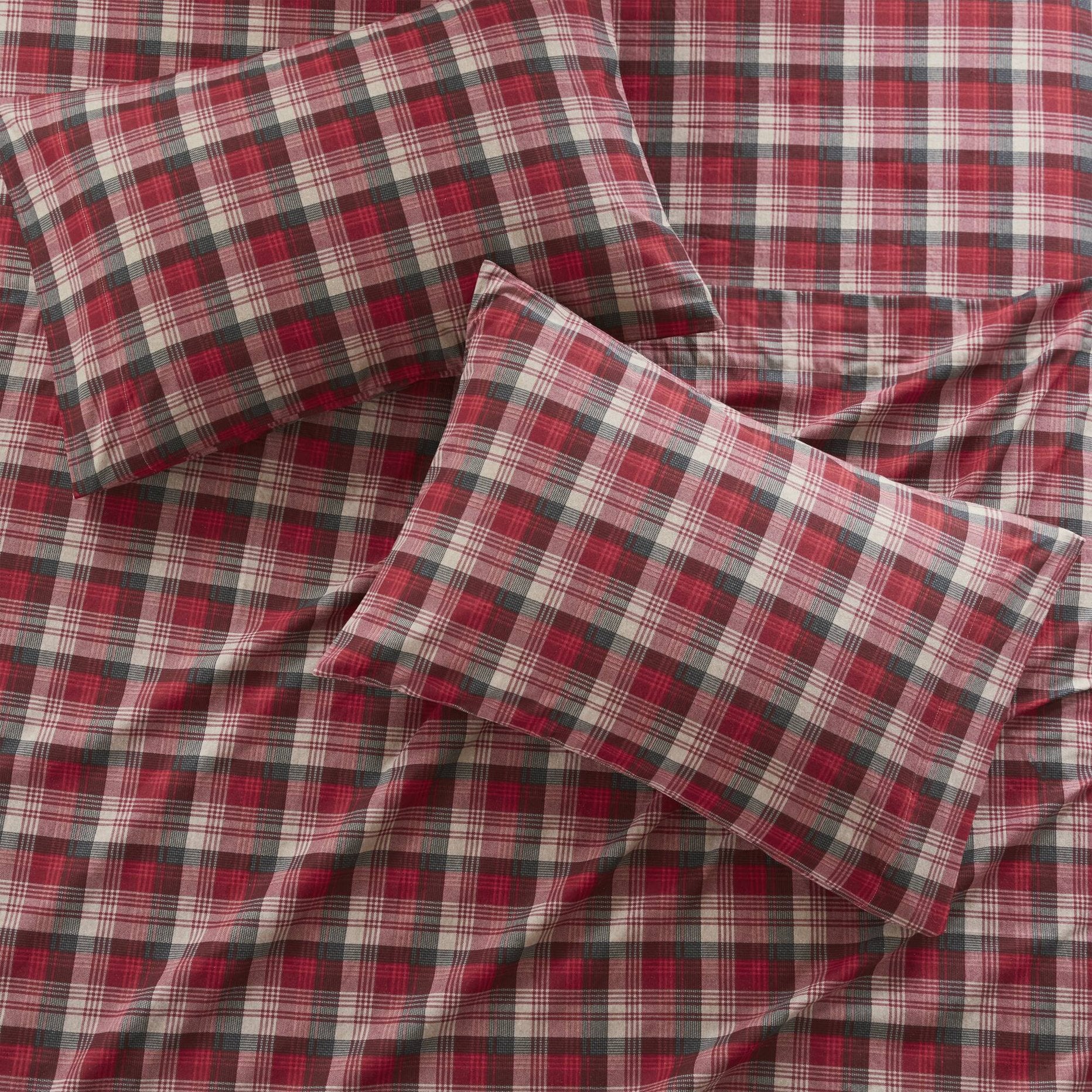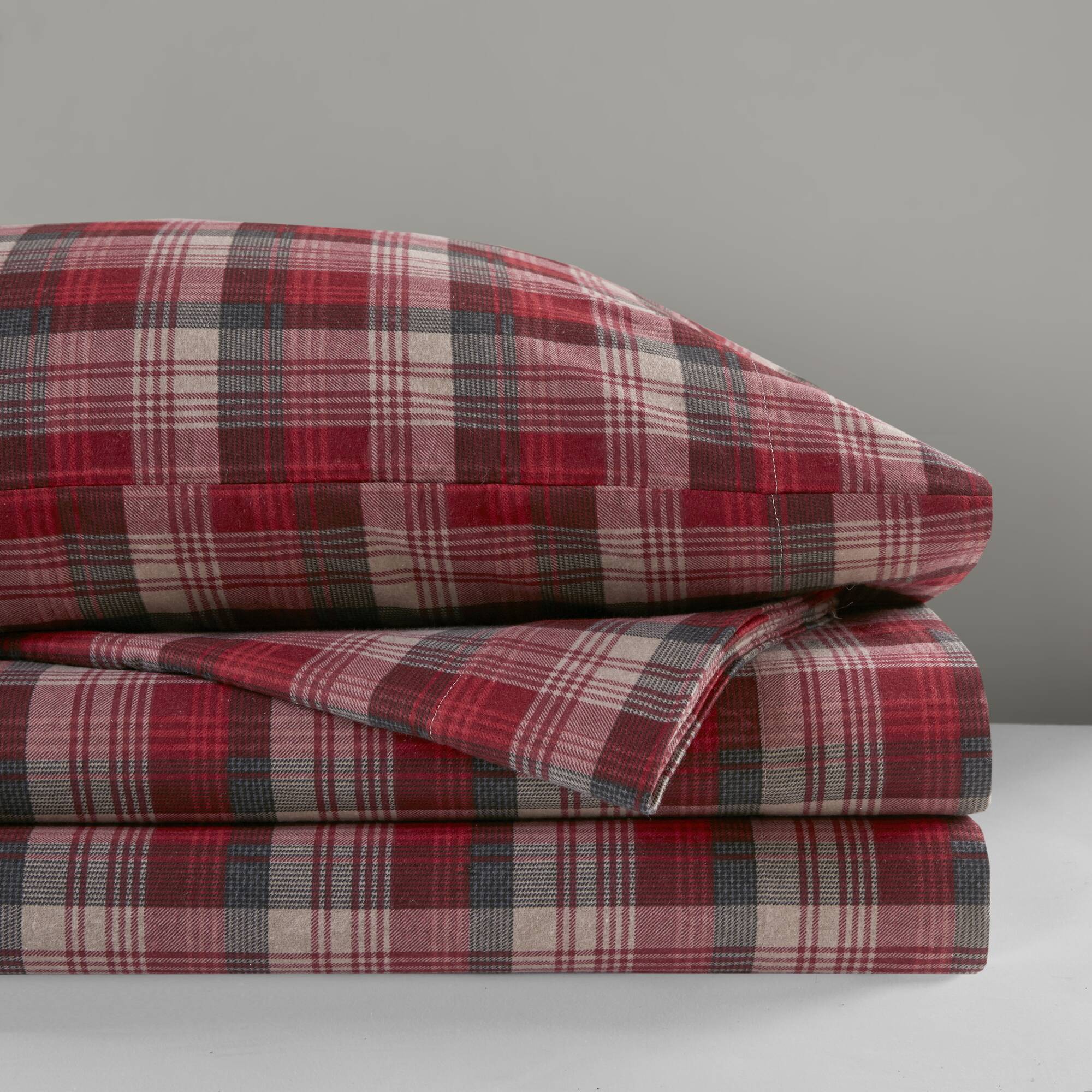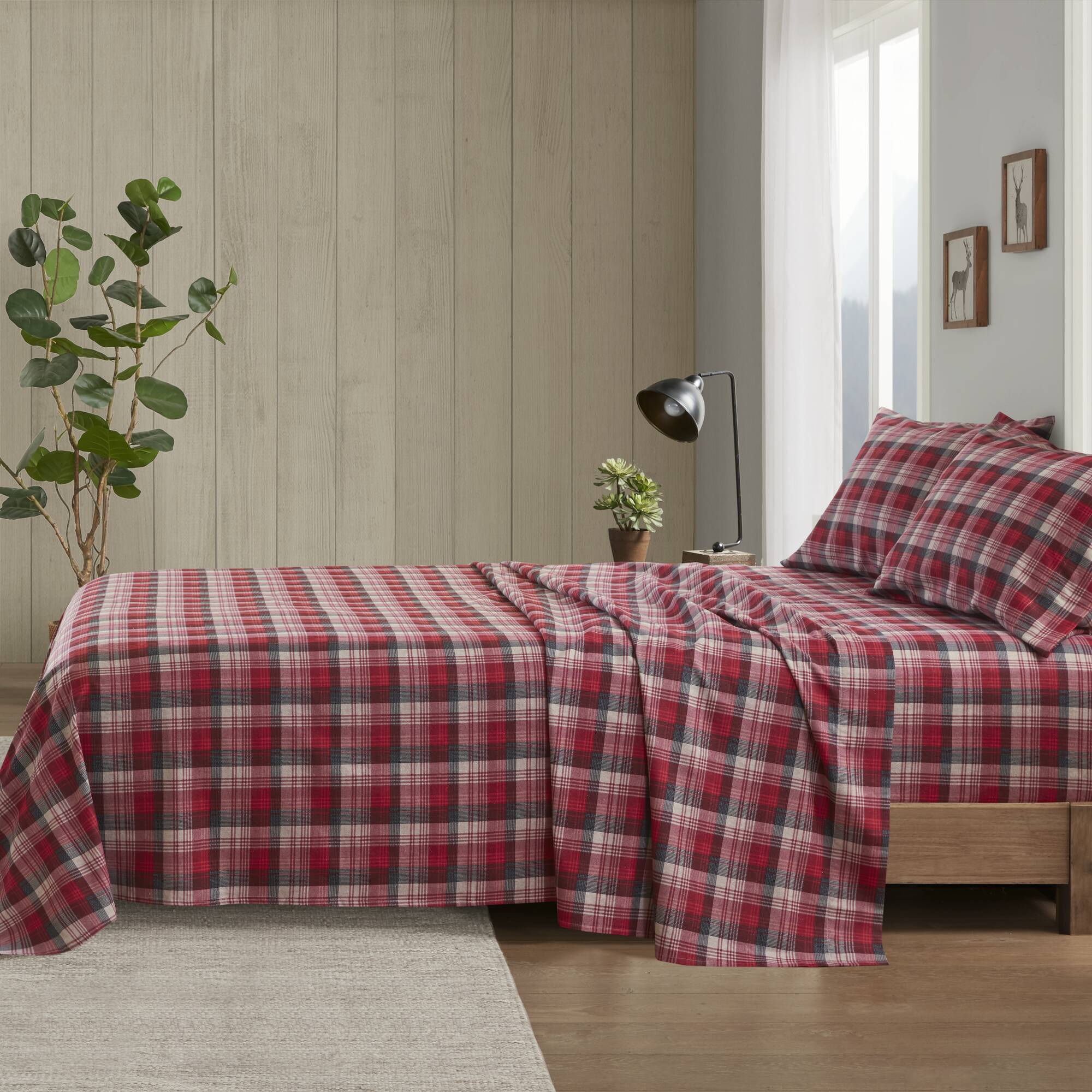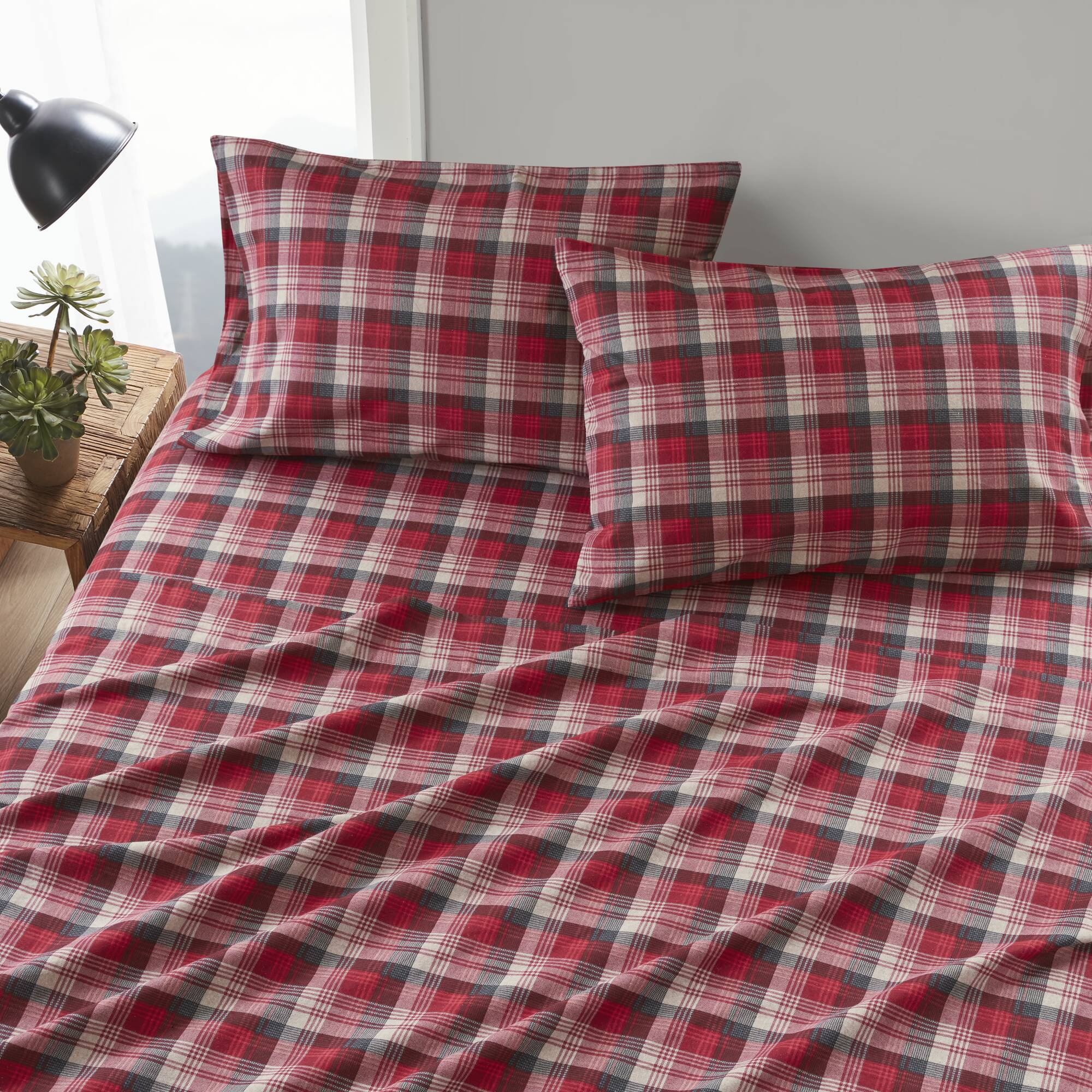 Wrap your bedroom in cozy, classic comfort with this 4-piece red plaid full sheet set—designed for warmth, softness, and timeless style. Crafted from 100% cotton flannel, the set offers breathable insulation for cool nights and a soft, brushed finish that improves with each wash. The traditional red plaid pattern adds a rustic, inviting touch that coordinates easily with a variety of bedroom décors.