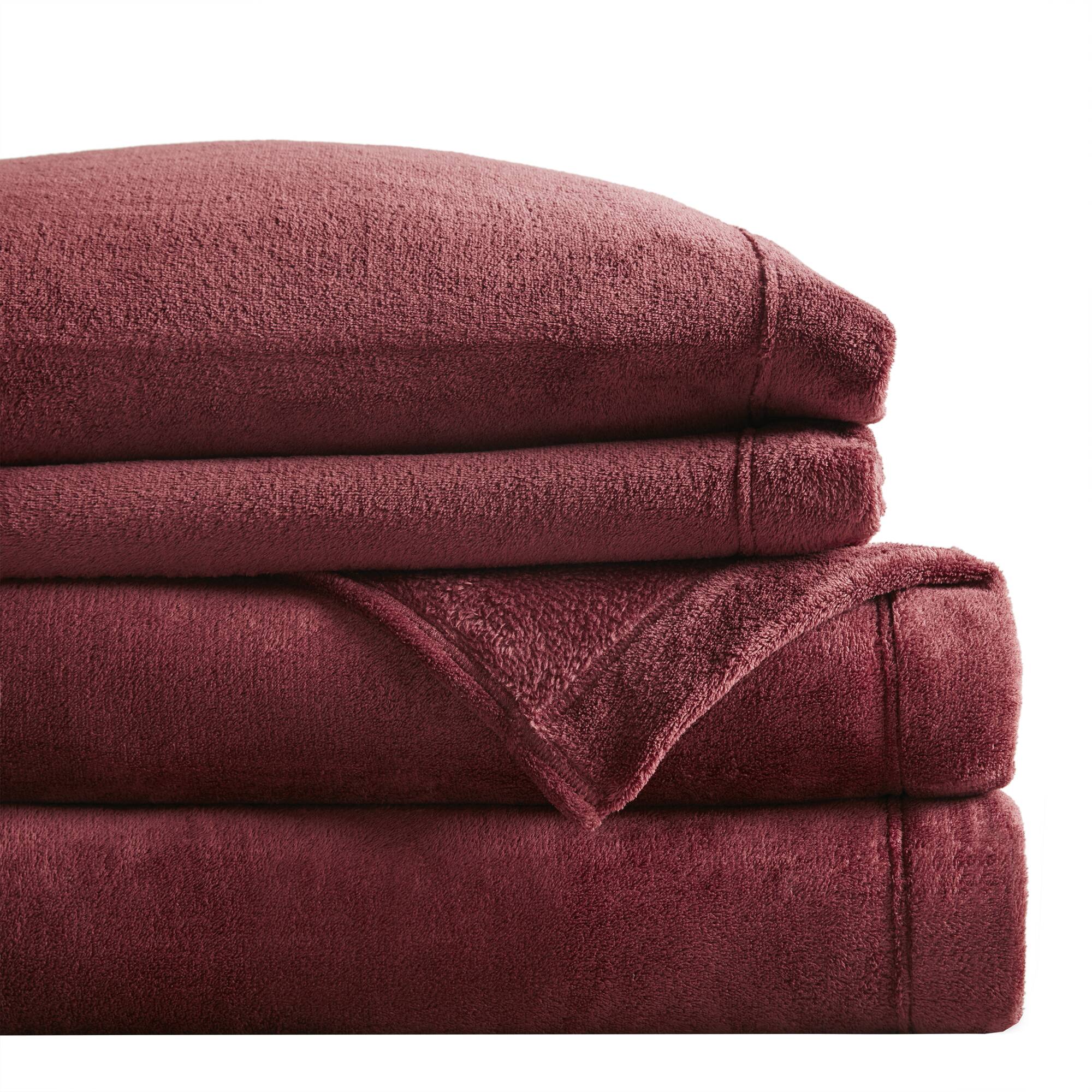 Wrap your bed in sumptuous softness with this 4-piece king micro plush sheet set in rich burgundy — engineered for warmth, durability, and a luxurious touch. The ultra-plush microfiber feels velvety against the skin, while the brushed finish on both sides locks in heat and provides a cozy, inviting sleep surface that’s easy to care for and resistant to pilling.