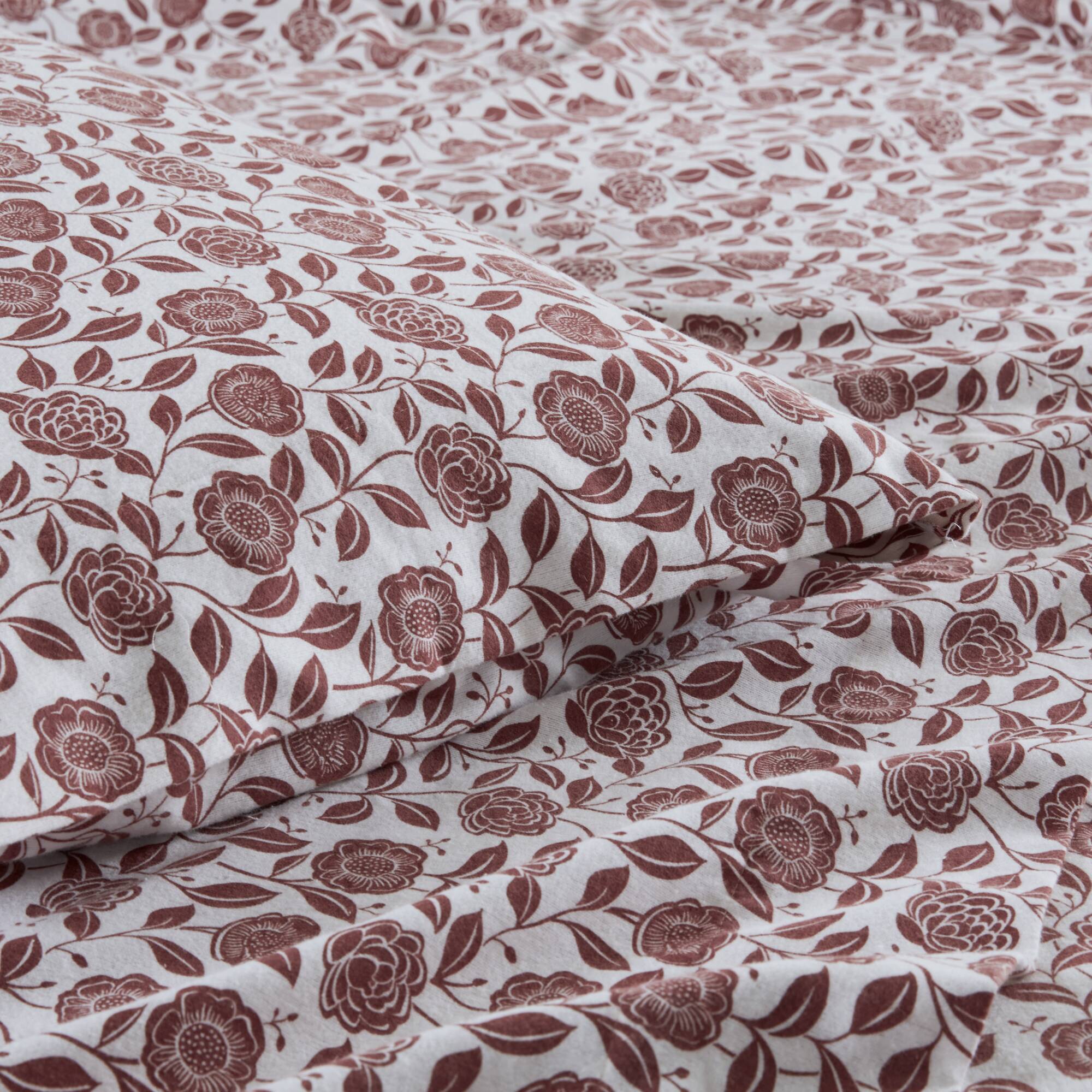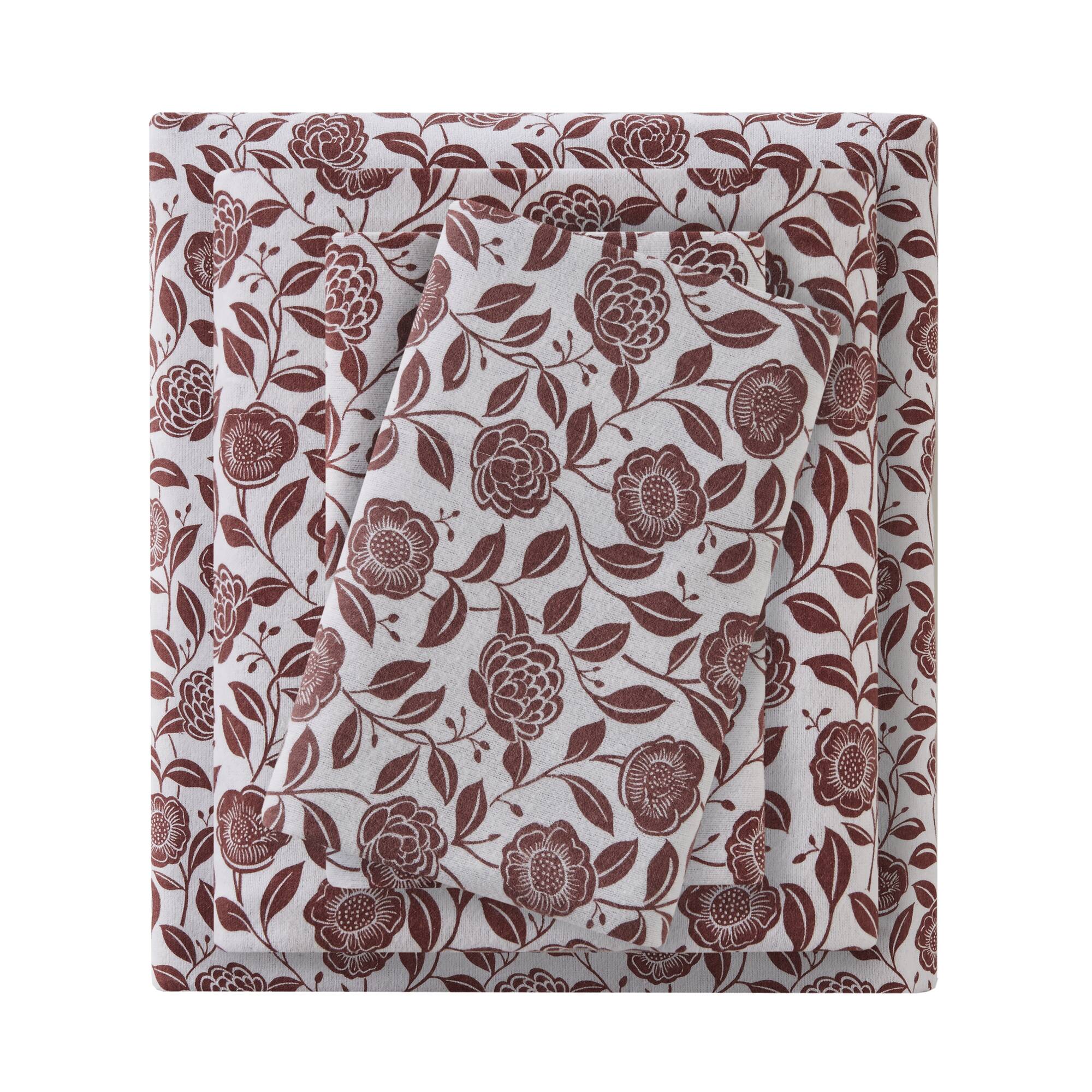 Bring warmth and cozy style to your bedroom with this 4-piece King sheet set in a rich rust floral design. Crafted from 100% cotton flannel for soft, breathable comfort, the set combines classic detailing with practical construction to keep you comfortable all night long.