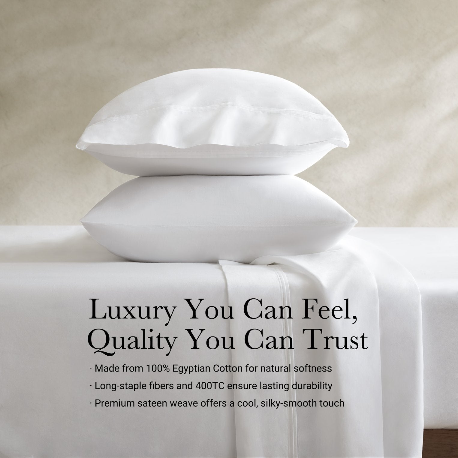 Experience luxurious comfort every night with this 4-piece California King sateen sheet set in classic white. Crafted from 100% Egyptian cotton with a smooth sateen finish, the set combines breathable softness, elegant drape, and durable construction to elevate your bedding—perfect for those who appreciate hotel-quality linens at home.