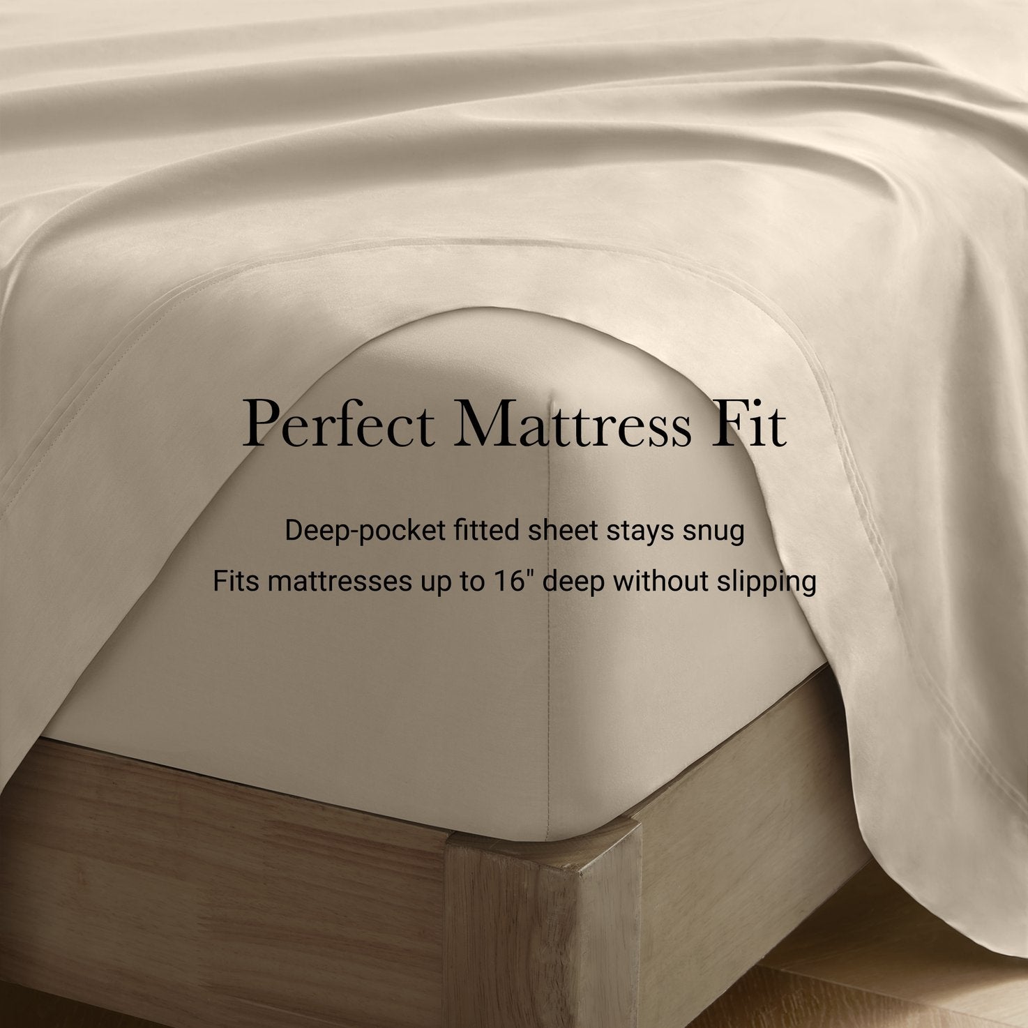 - 16" deep-pocket fitted sheet stays snug on most mattresses without slipping