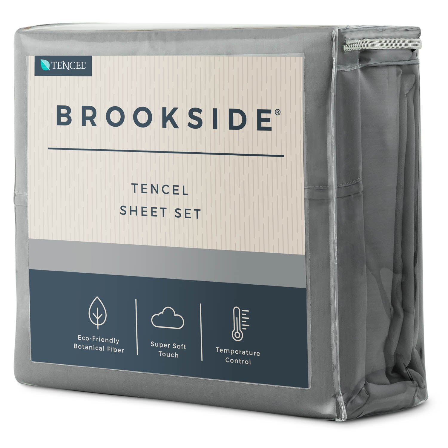 Experience breathable comfort and a luxurious silky feel with the Brookside Tencel sheet set. Crafted from eco-friendly TENCEL™ lyocell fibers, this slate-gray set is designed to regulate temperature and wick moisture, keeping you cool in summer and comfortably warm in winter. The smooth, durable fabric and tailored fit deliver a refined look and restful sleep night after night.