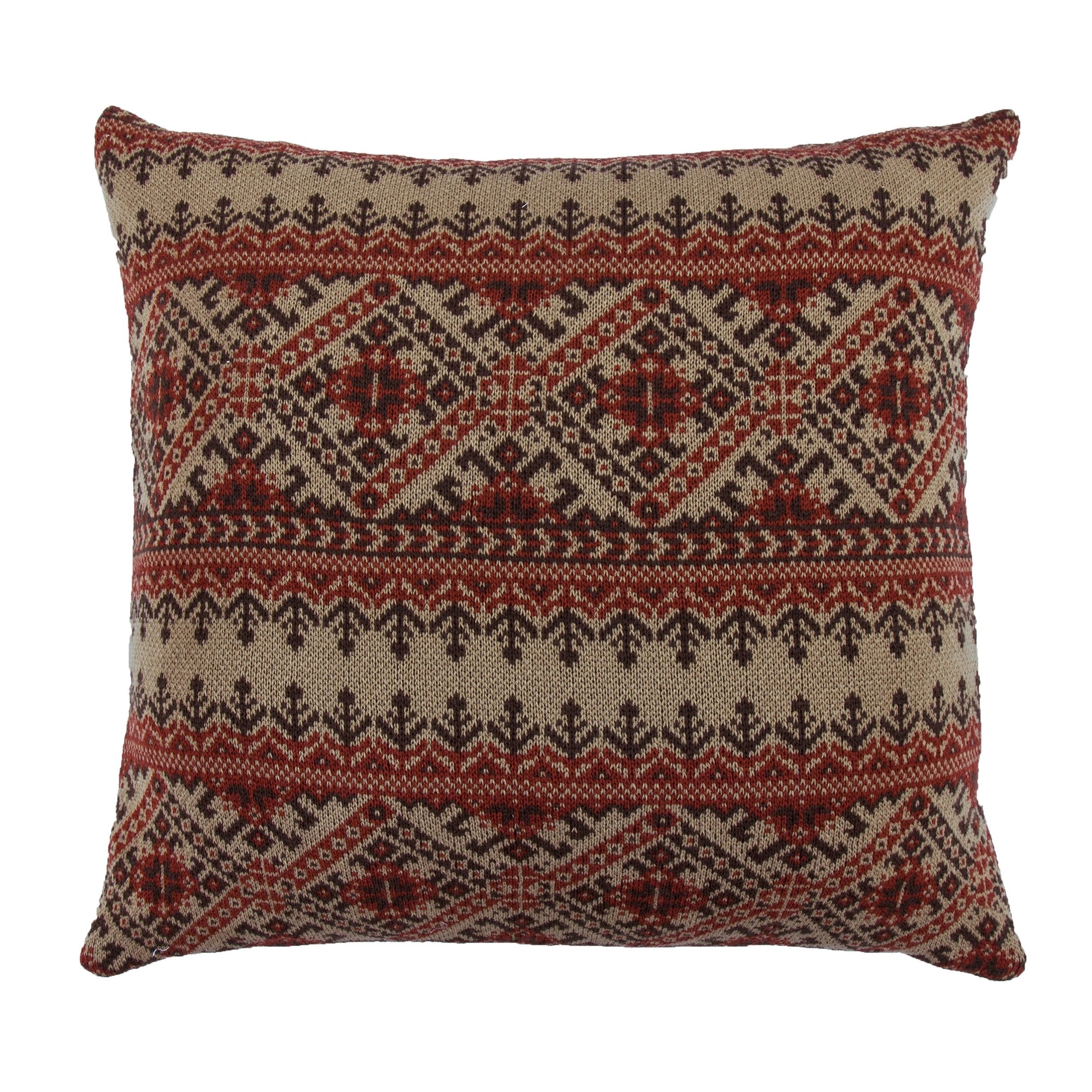 Wrap yourself in the warm embrace of tradition and comfort with our Fair Isle Knit Euro Sham. This beautifully crafted piece draws inspiration from the iconic Scottish Fair Isle knitting pattern, showcasing intricate geometric designs that evoke the serene beauty of nature. The rich, toasty shades of tan, rustic red, and deep chocolate create a cozy atmosphere, making it the perfect addition to any room. Ideal for enhancing your lodge-inspired decor, this Euro sham pairs wonderfully with our Fair Isle Throw Blanket and Body Pillow for a cohesive and stylish look.