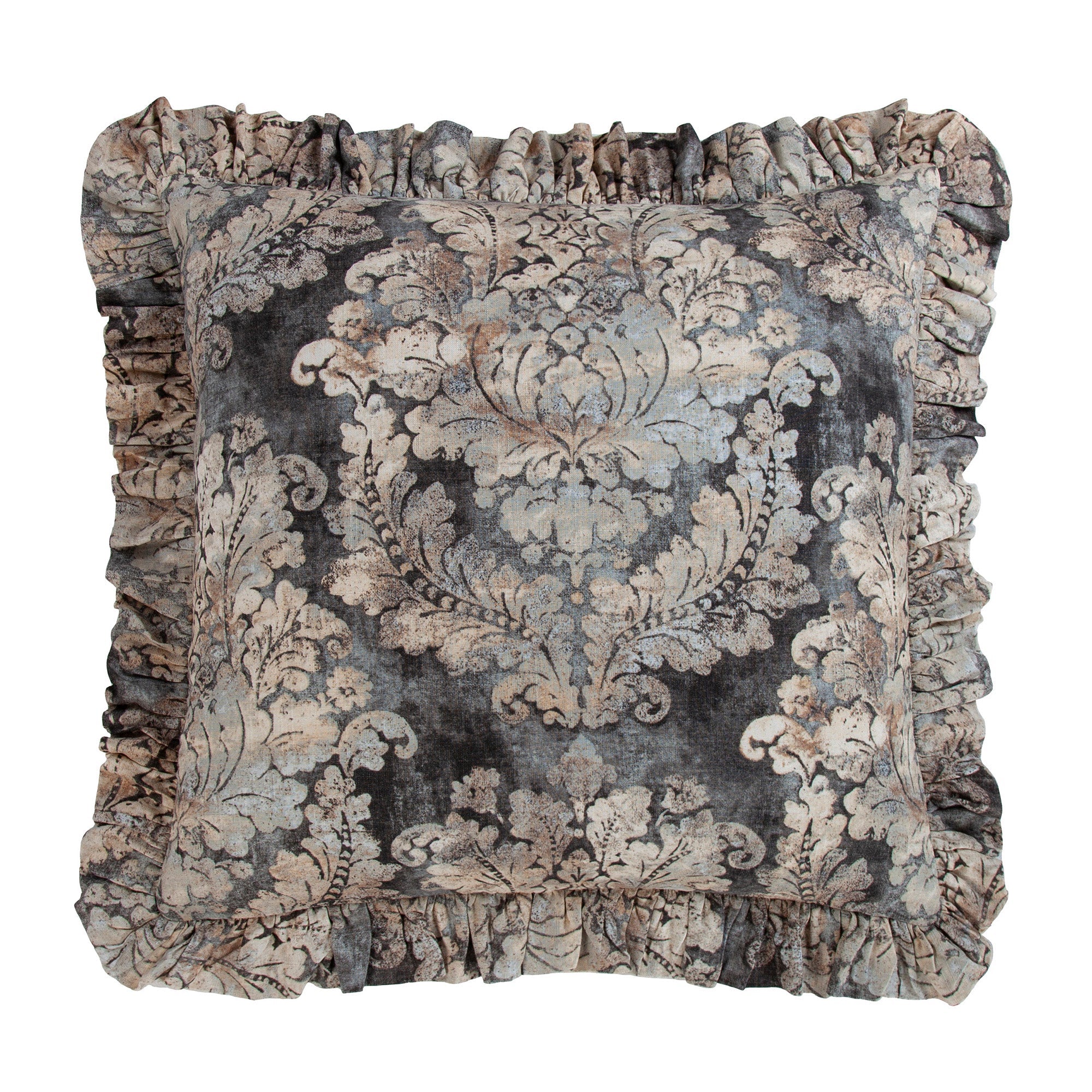 - Elegant smoky damask print in a multi-color palette of gray, cream, tan, light blue, and rust
