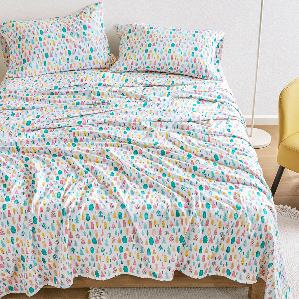 Bring cozy, breathable comfort to your bedroom with this intelligently designed 100% cotton flannel sheet set. Soft, warm and beautifully pigment-printed, the set delivers lasting color and a gentle touch—perfect for cooler nights and year-round layered bedding.