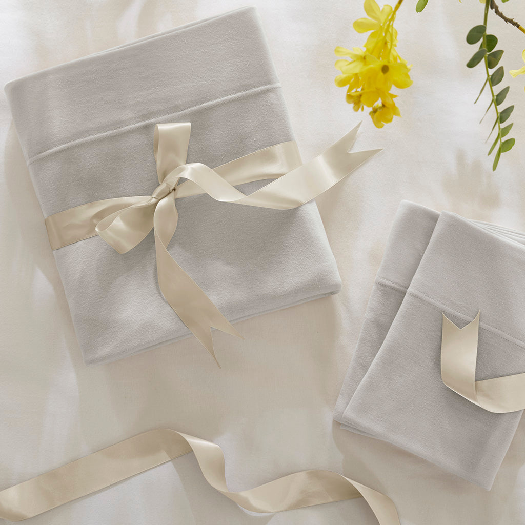 Experience the soft, breathable comfort of a sheet set that feels like your favorite tee—designed to perform year-round. This jersey knit cotton blend adapts to changing temperatures, staying cozy in cooler months and breathable when it’s warm. Thoughtfully constructed for easy bed-making and low-maintenance care, it brings everyday comfort and a clean, modern look to any bedroom.