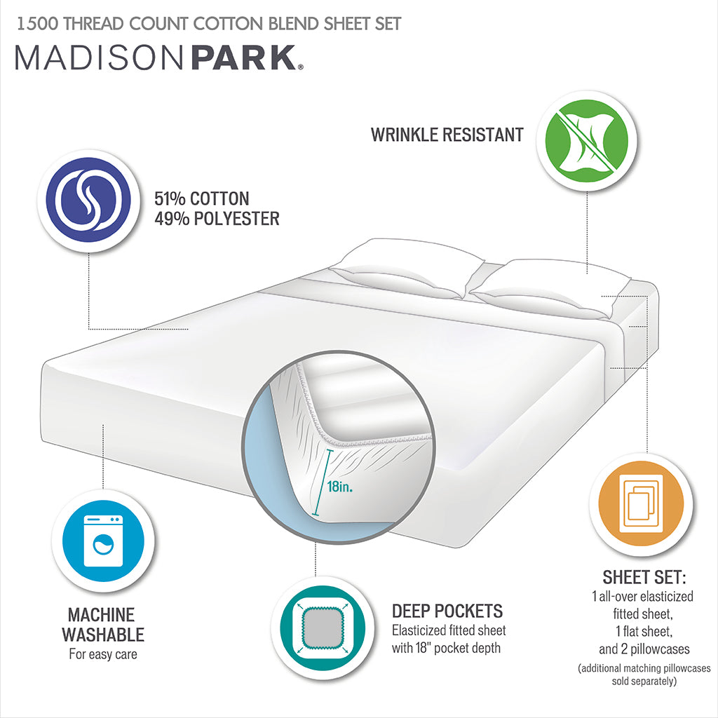 - Dimensions: Deep pocket fitted sheet to accommodate thicker mattresses—please refer to specific size labeling for pocket depth and exact dimensions.