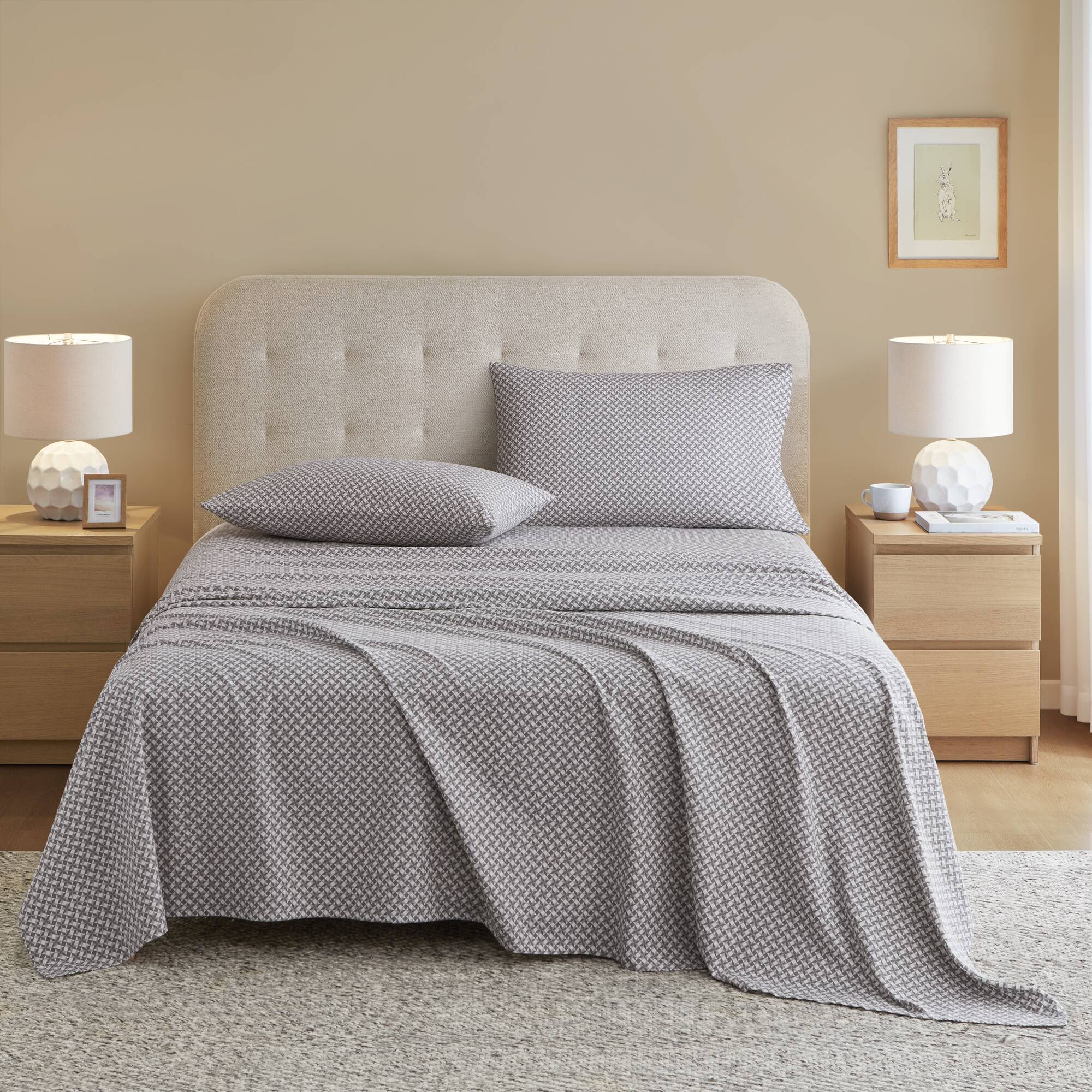 Cozy up for chilly nights with this True North flannel sheet set from Sleep Philosophy. Made of 100% cotton flannel with a charming toile pine tree print and a soft, brushed finish, these sheets deliver warmth, breathability, and classic style—perfect for rustic or nature-inspired bedrooms.