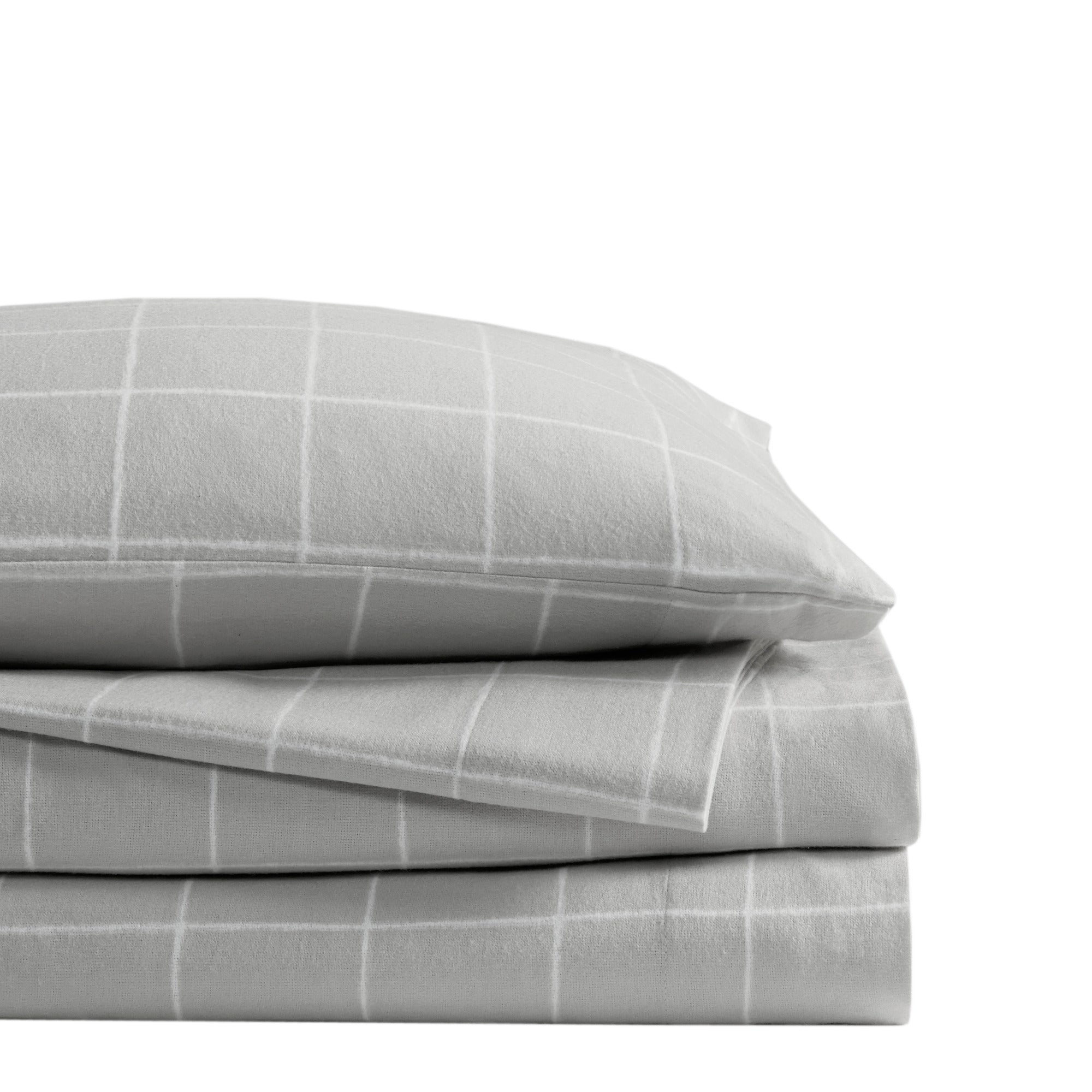 Snuggle into cozy, breathable warmth with the True North flannel sheet set from Sleep Philosophy. Crafted from 100% cotton with a soft brushed finish, these grey windowpane sheets combine timeless style with comforting heft—perfect for cooler nights or anyone who loves the plush feel of quality flannel. The printed windowpane pattern adds understated visual interest that coordinates easily with bedding and bedroom decor.