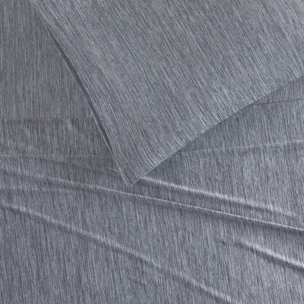 Experience cooler, breathable comfort with this silky-smooth jersey knit sheet set—designed for all-night softness and a modern, heathered look that complements any bedroom decor. The lightweight nylon-polyester blend stays breathable for warm sleepers while resisting wrinkles and maintaining an easy-care finish.