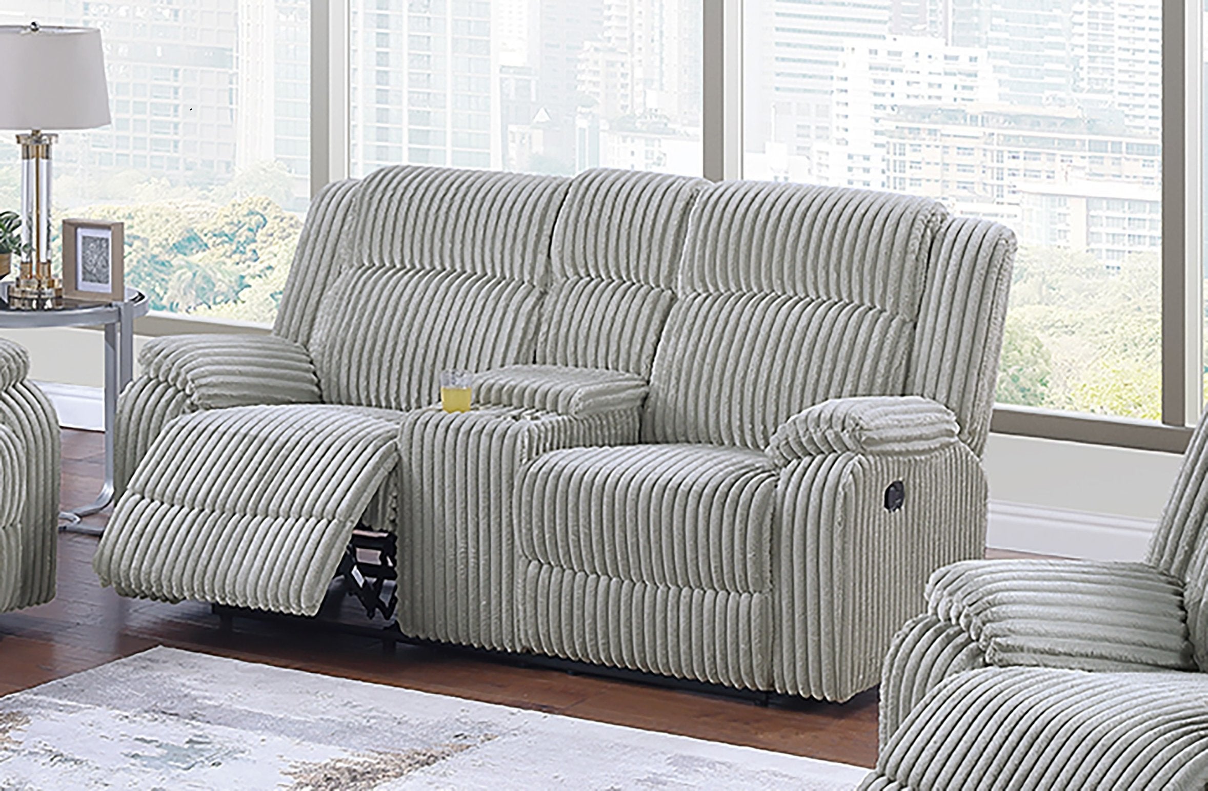 Sink into plush comfort with this 2-seater motion loveseat upholstered in fur-like corduroy. Designed for everyday relaxation, it combines a soft, tactile surface with supportive padding and a smooth manual recline mechanism. The ash color and refined silhouette make it a versatile addition to contemporary or classic living spaces—perfect for movie nights, quiet reading, or pairing with coordinating pieces to complete your room.