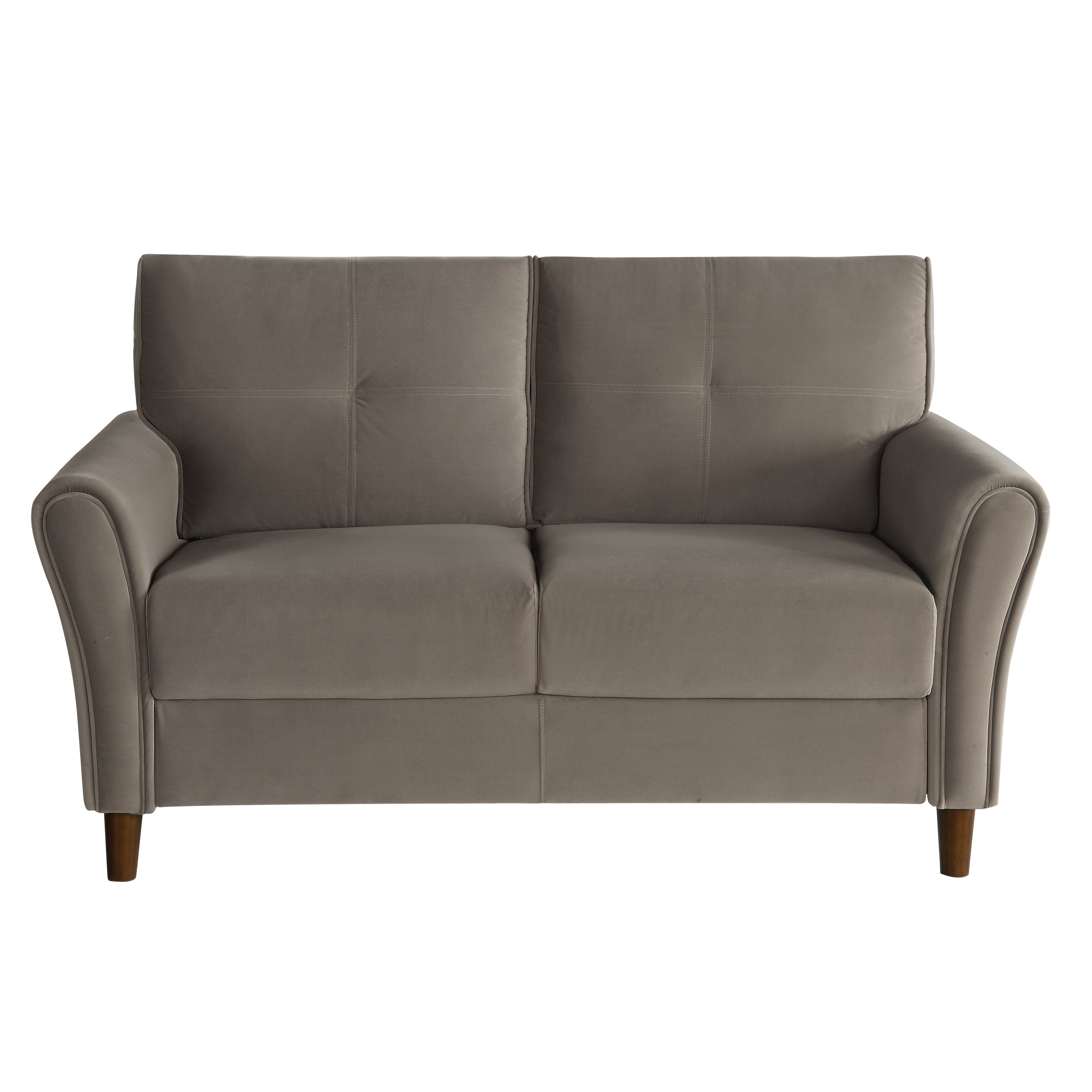 Add a touch of modern elegance and plush comfort to your living area with this brown velvet loveseat. Tailored details—flared arms, clean lines, and stitch-tufted seatbacks—combine with a solid wood frame to create a refined focal piece that’s both stylish and supportive. Ideal for apartments, small living rooms, or as complementary seating in larger arrangements, this loveseat balances form and function with soft velvet upholstery and thoughtful proportions.