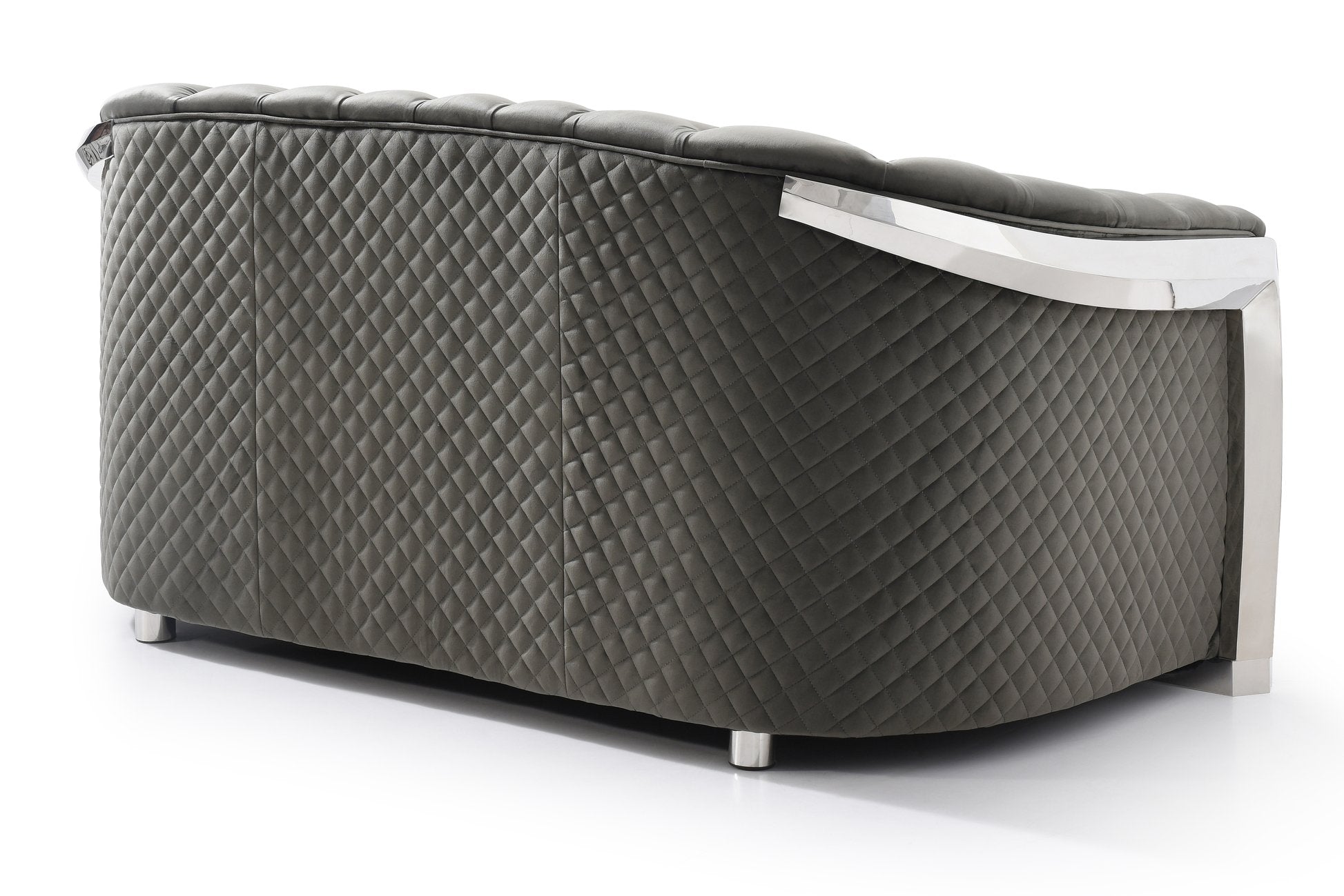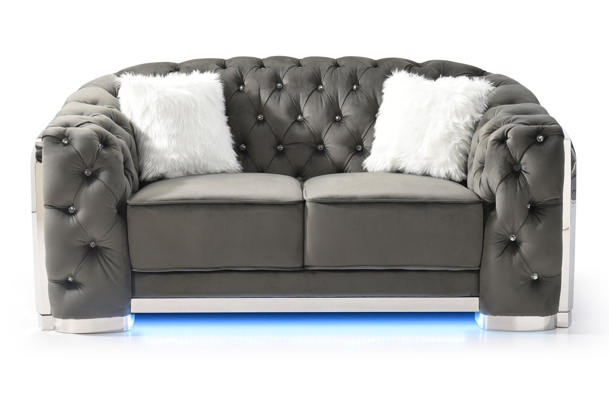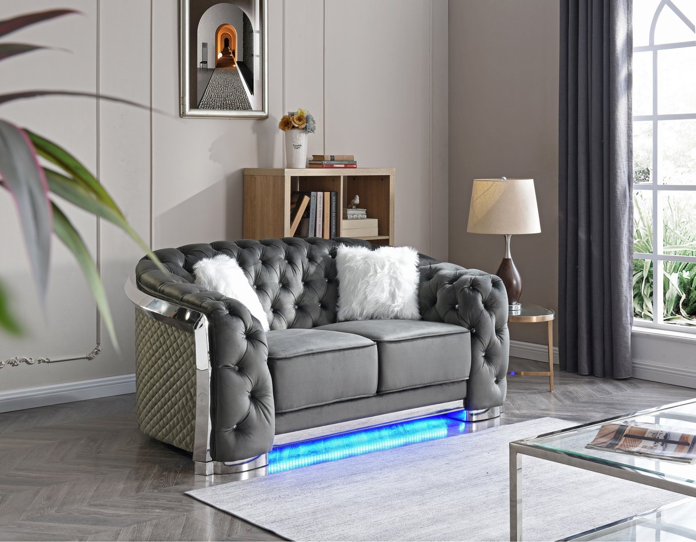 Elevate your living space with a contemporary loveseat that blends plush comfort and modern design. Wrapped in soft gray velvet with elegant flared arms and welted cushions, this piece seats two comfortably while providing lasting support and refined style.