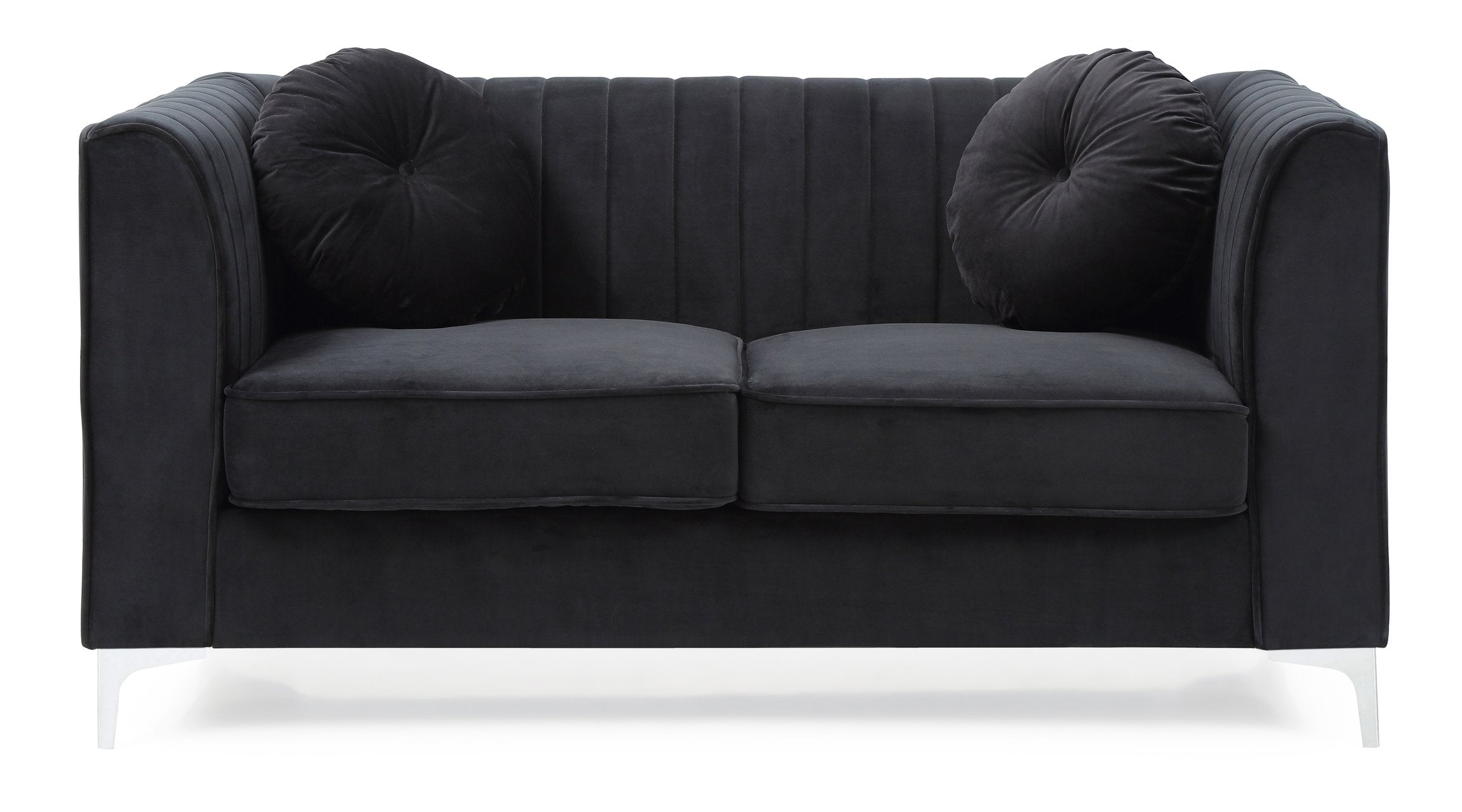 A sleek, modern loveseat upholstered in sumptuous black velvet, designed to deliver both style and comfort for two. Its sloped arms and generous seat depth create an inviting seating experience, while a compact footprint makes it ideal for living rooms, apartments, or guest spaces. Easy to assemble and simple to maintain, this piece blends contemporary design with everyday functionality.