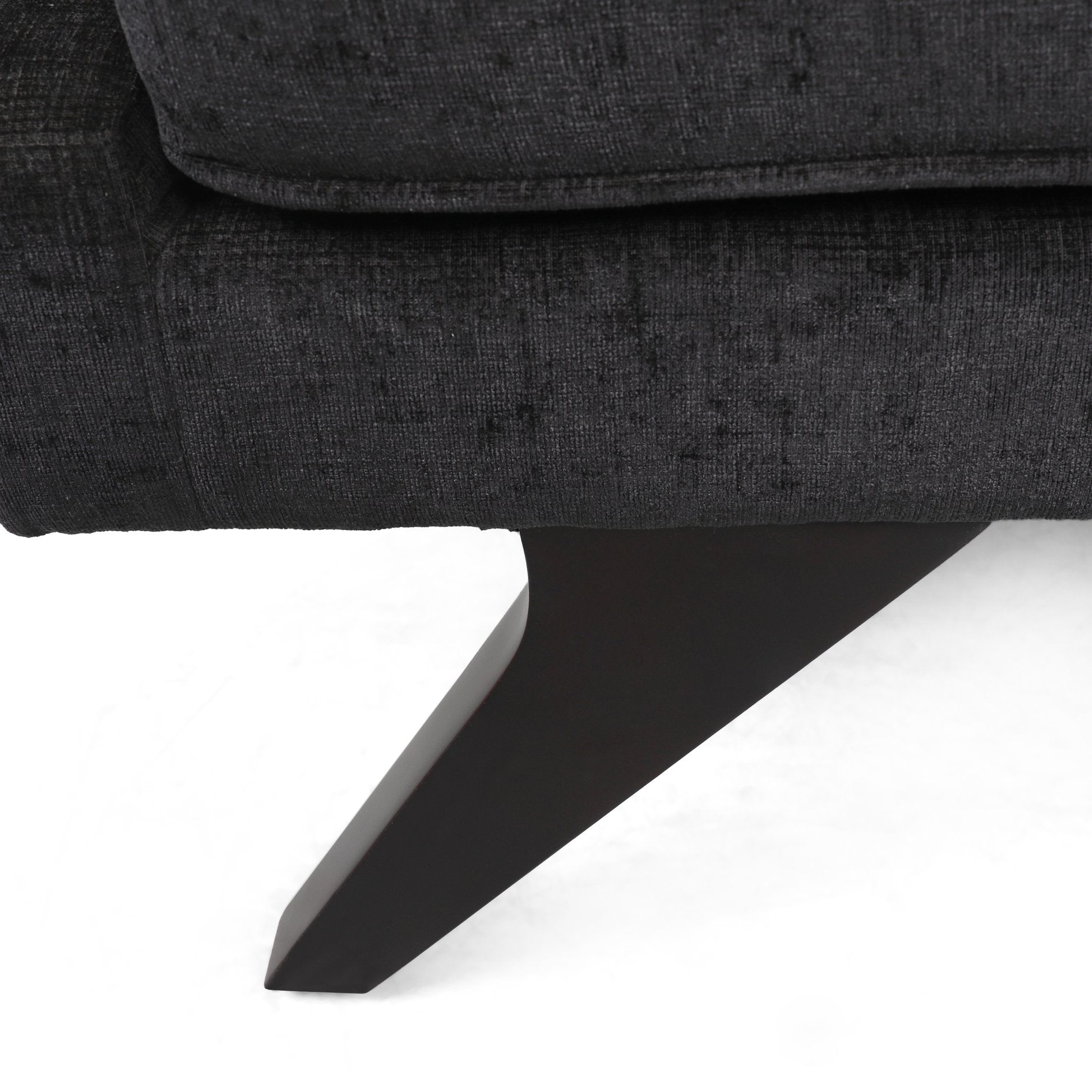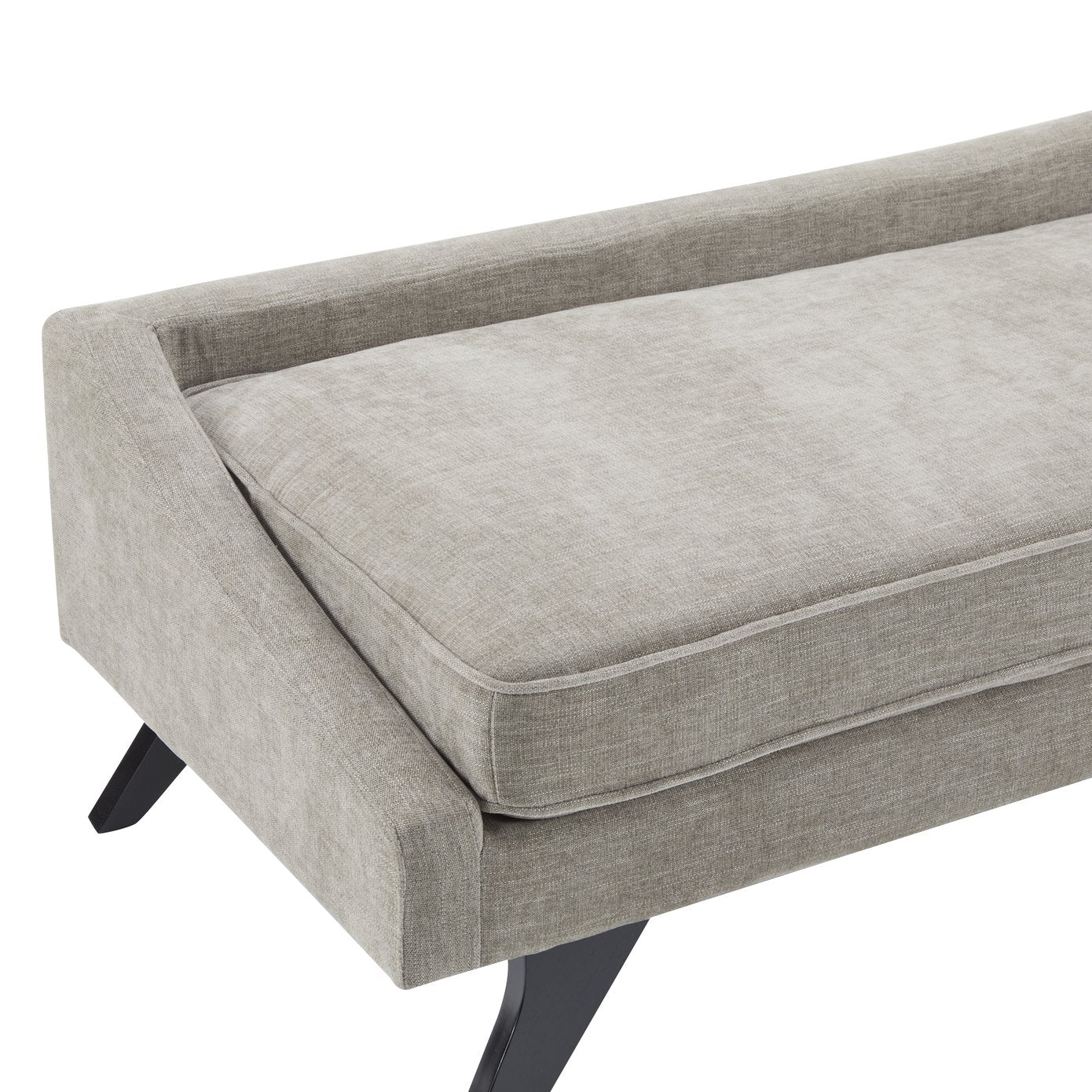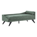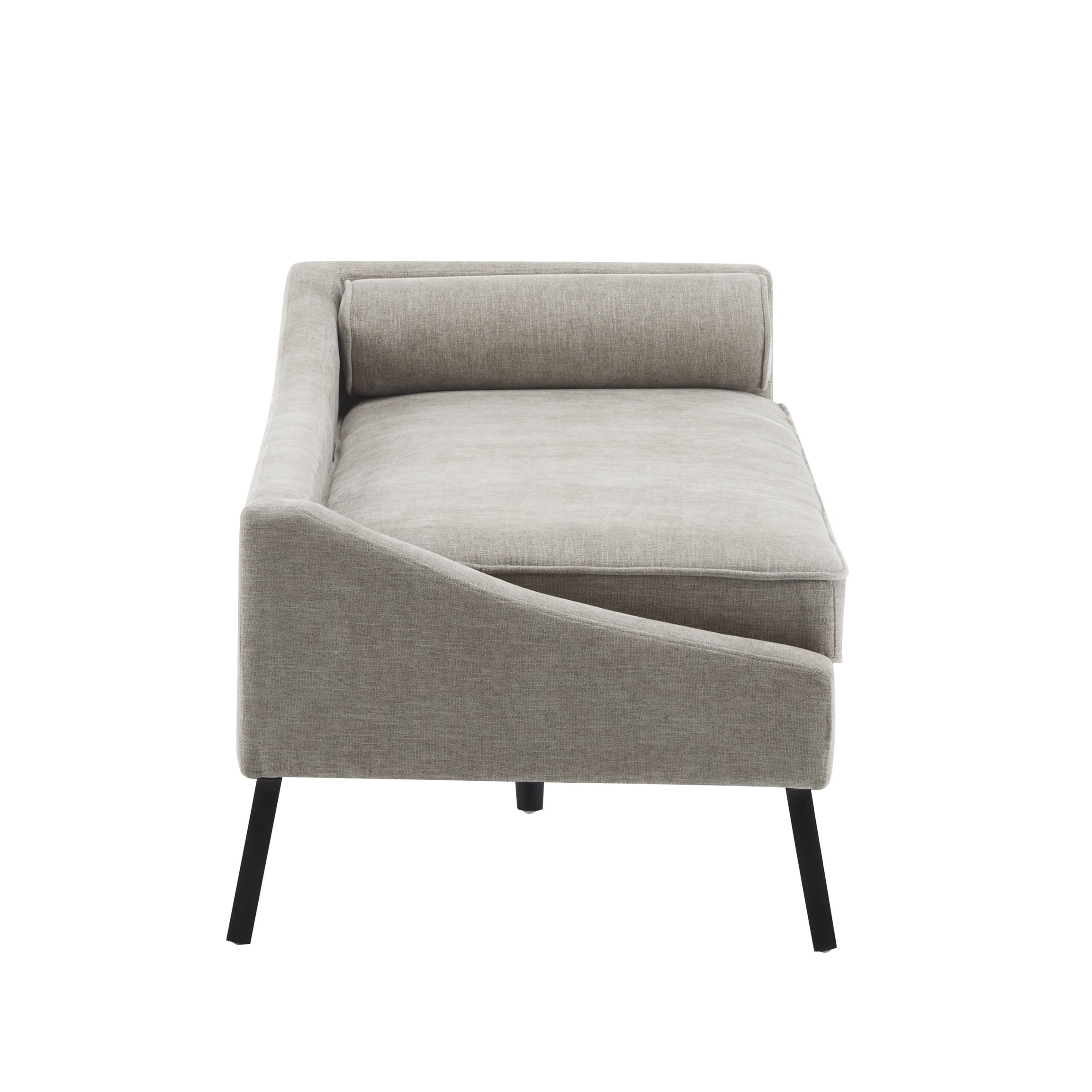 Bring refined comfort to your living room with this elegant chaise lounge. Upholstered in durable 100% polyester fabric and supported by dark brown birch wood legs, its sloped frame, rolled accent pillow, and splayed-leg silhouette create a sophisticated focal point that blends modern style with everyday relaxation.