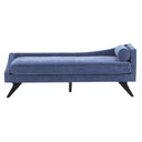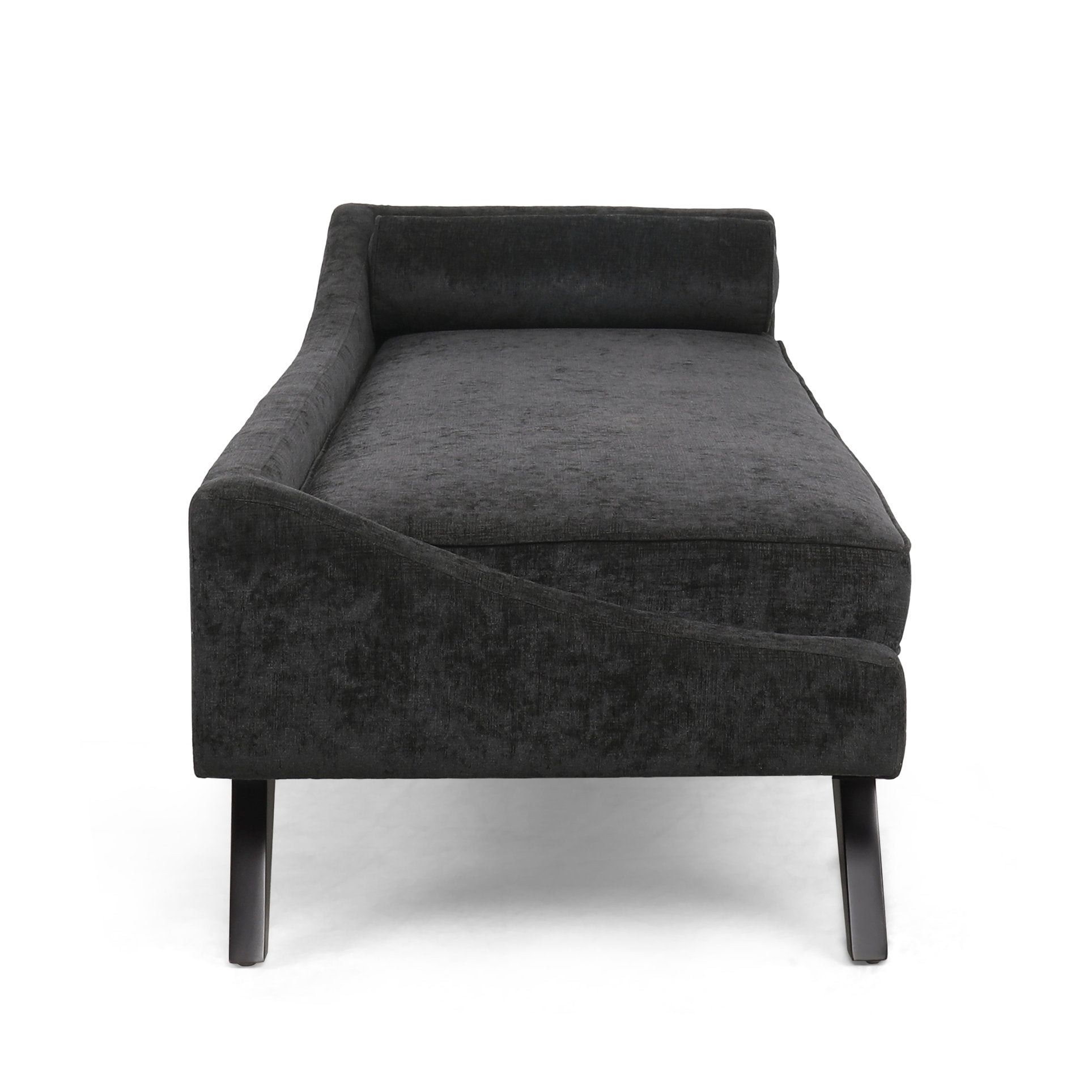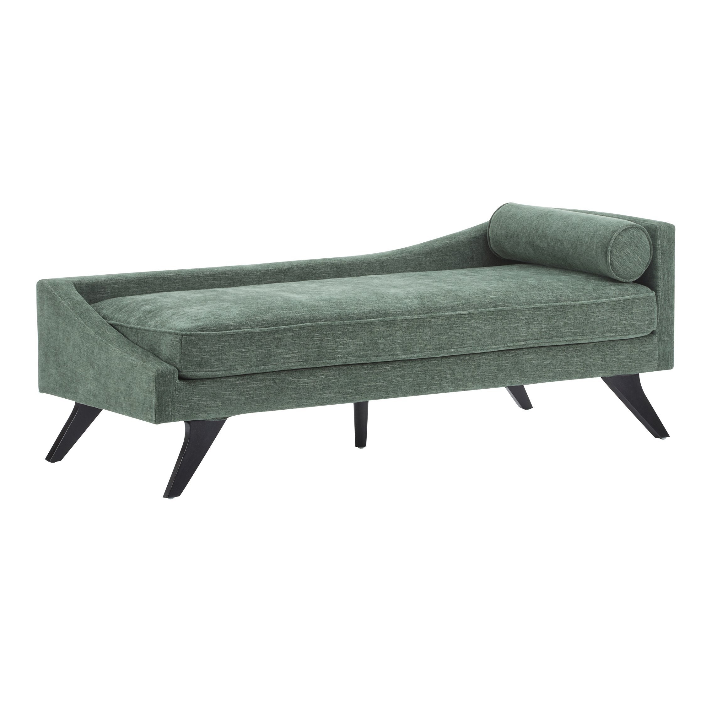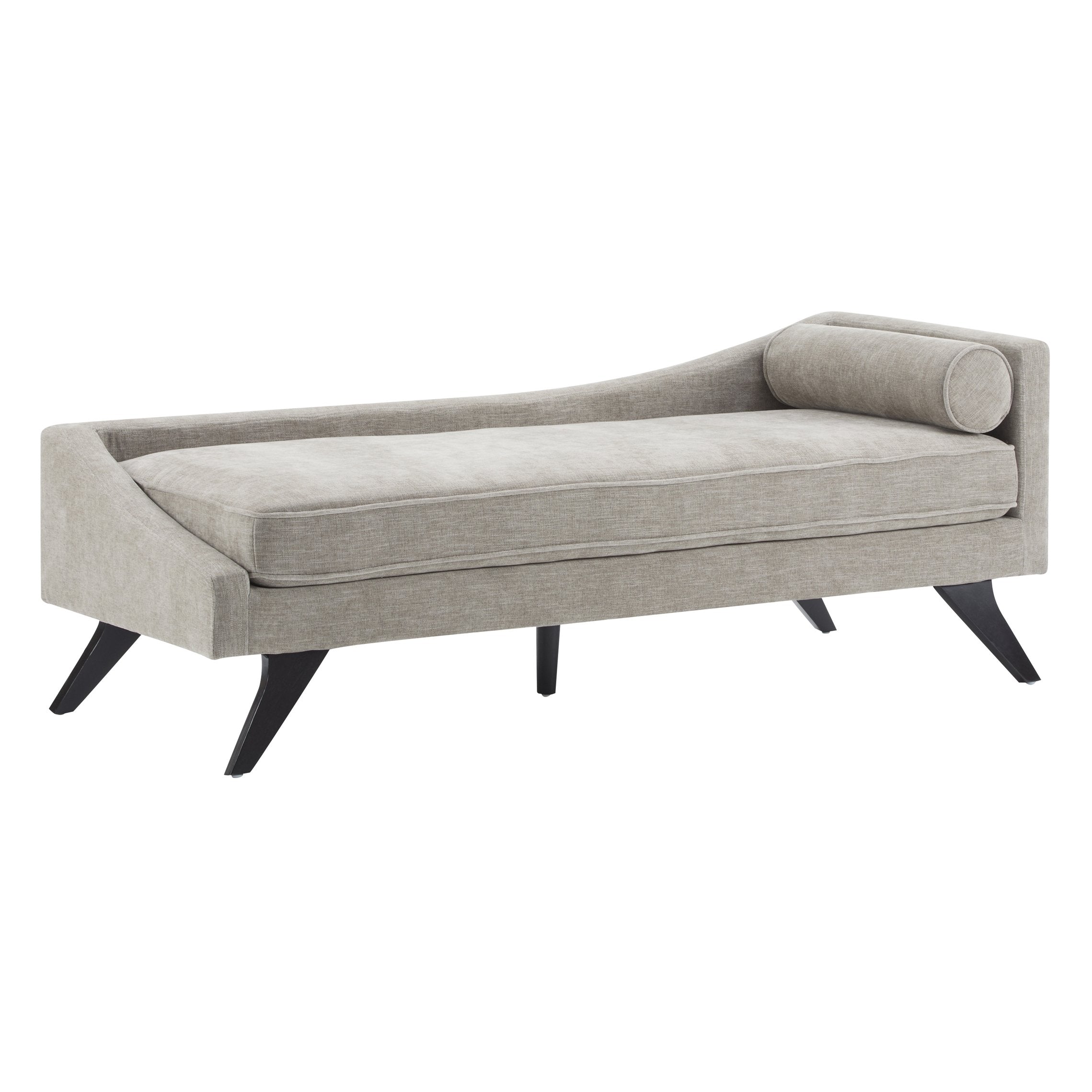- Find style and leisure in the form of a beautifully designed chaise lounge that boasts refinement in any home. Featuring smooth upholstery and iconic splayed legs, this chaise lounge offers a luxurious space in your living room for all to enjoy. Our chaise lounge is finished with a lovely rolled accent pillow that perfectly matches its sloped frame, making this both a sophisticated and enjoyable addition. Perfectly balancing comfort and style, this chaise lounge invites you to upgrade your inter