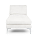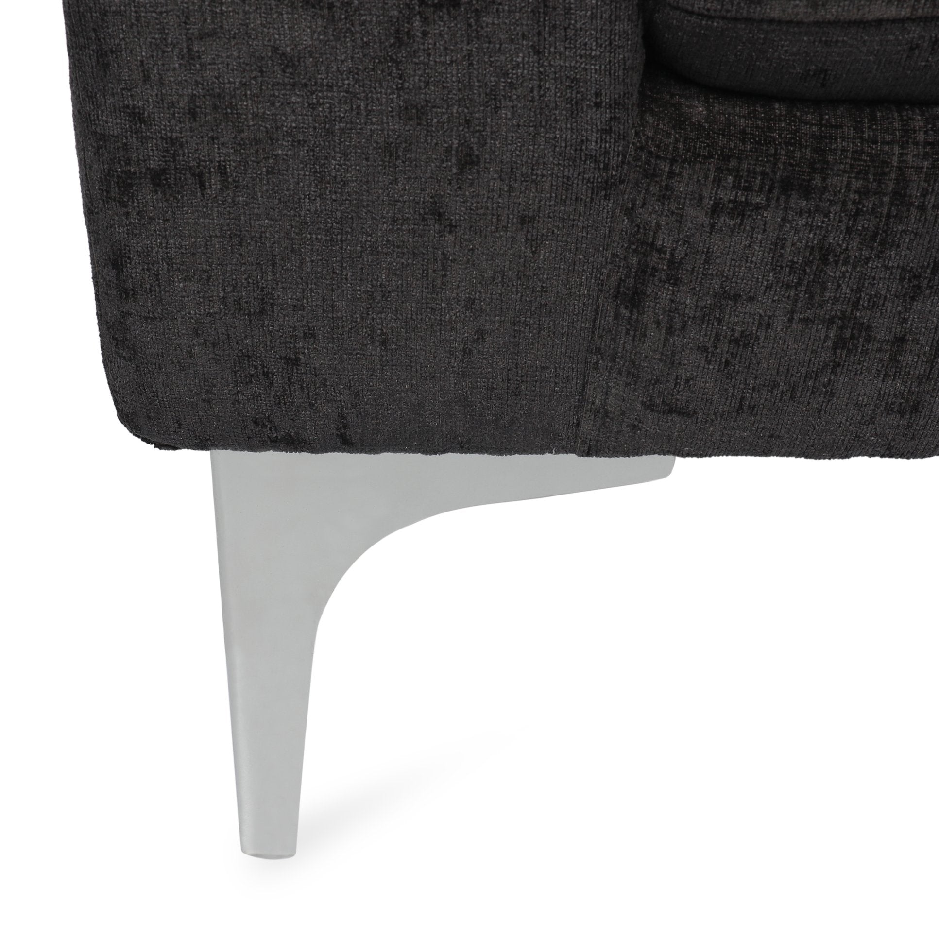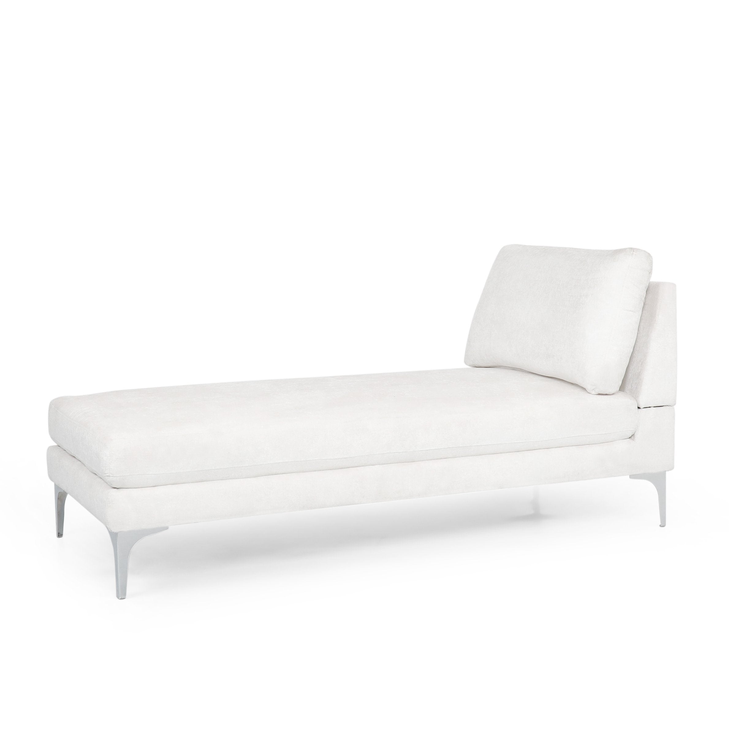 Sink into contemporary comfort with this sleek black fabric chaise lounge—designed for relaxing, reading, or accenting your living space. Smooth upholstery, a plush backrest pillow, and striking silver iron legs combine modern style with everyday comfort, making it an elegant focal point for lounges, bedrooms, or home offices.