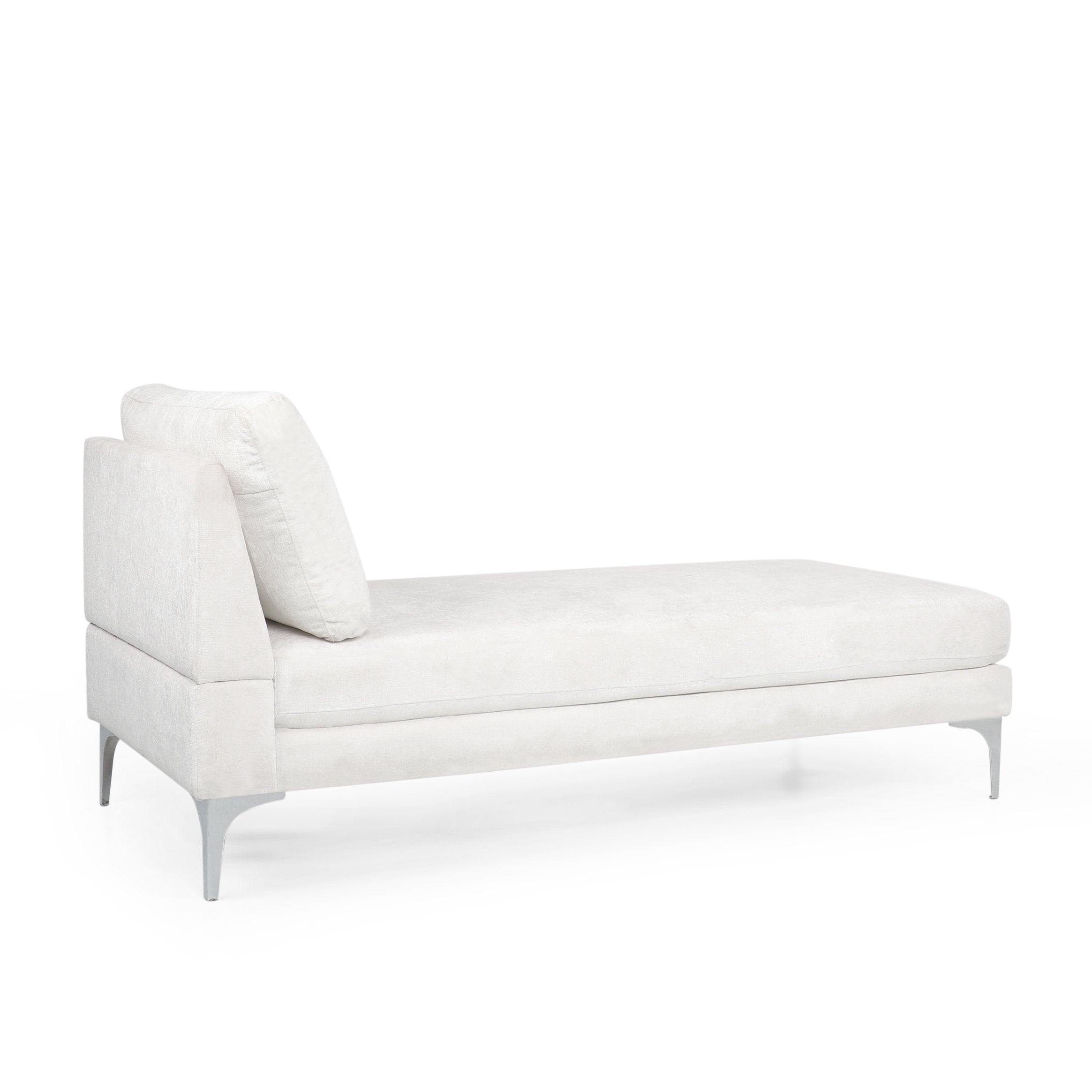 - If you are looking to upgrade your seating ensemble, then look no further. Featuring smooth upholstery and stunning silver bracket legs, this chaise lounge is the perfect spot to stretch out and relax on a weekend afternoon. Our chaise lounge is finished with a plush backrest pillow, making this both a comfortable and modern addition to your living room space.
