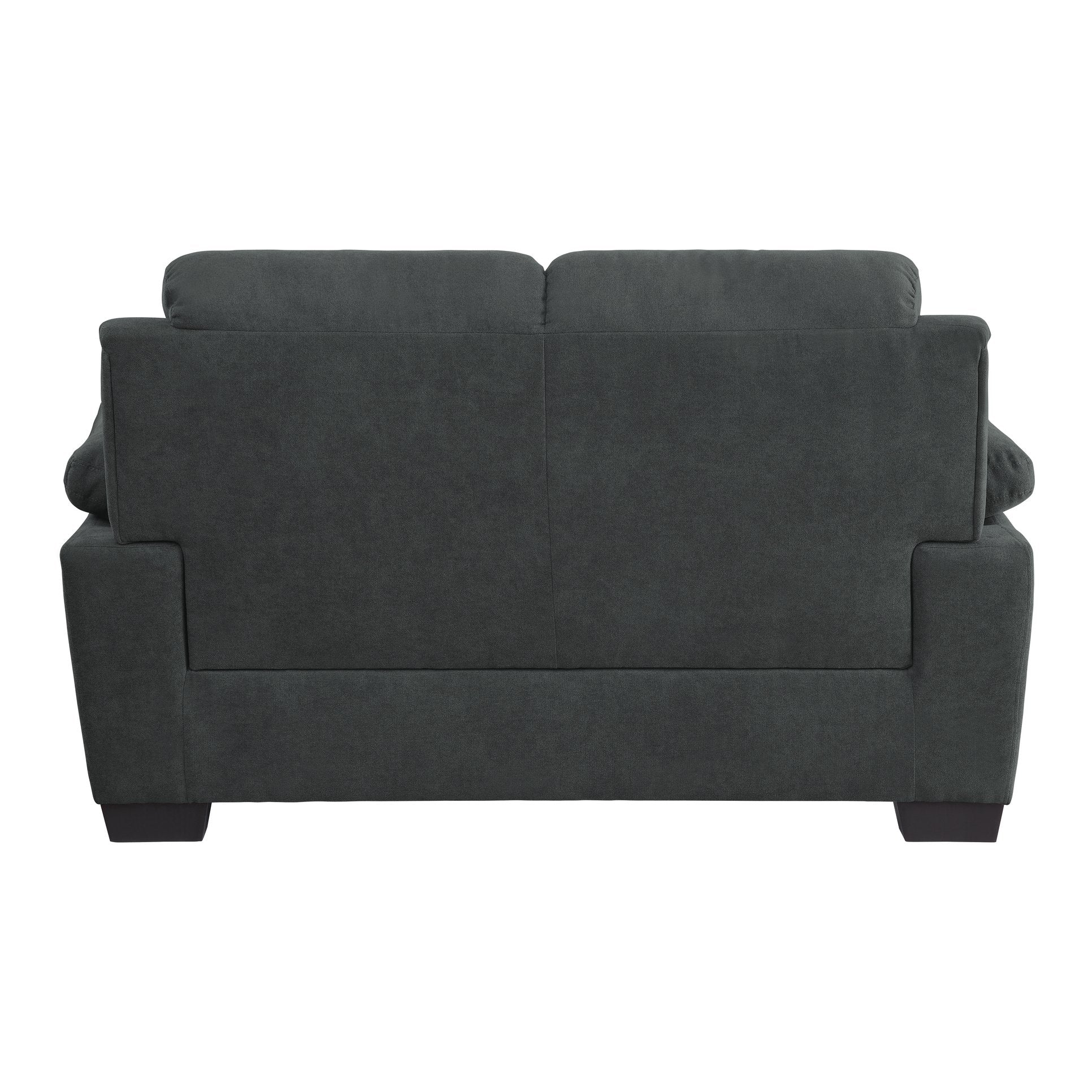Enjoy modern comfort with a tailored silhouette: this dark gray textured loveseat combines plush seating, pillow-top arms, and subtle channel tufting to create a refined focal point for your living room. Its neutral upholstery and solid wood frame deliver lasting support and style, while the compact footprint fits both contemporary and transitional spaces.