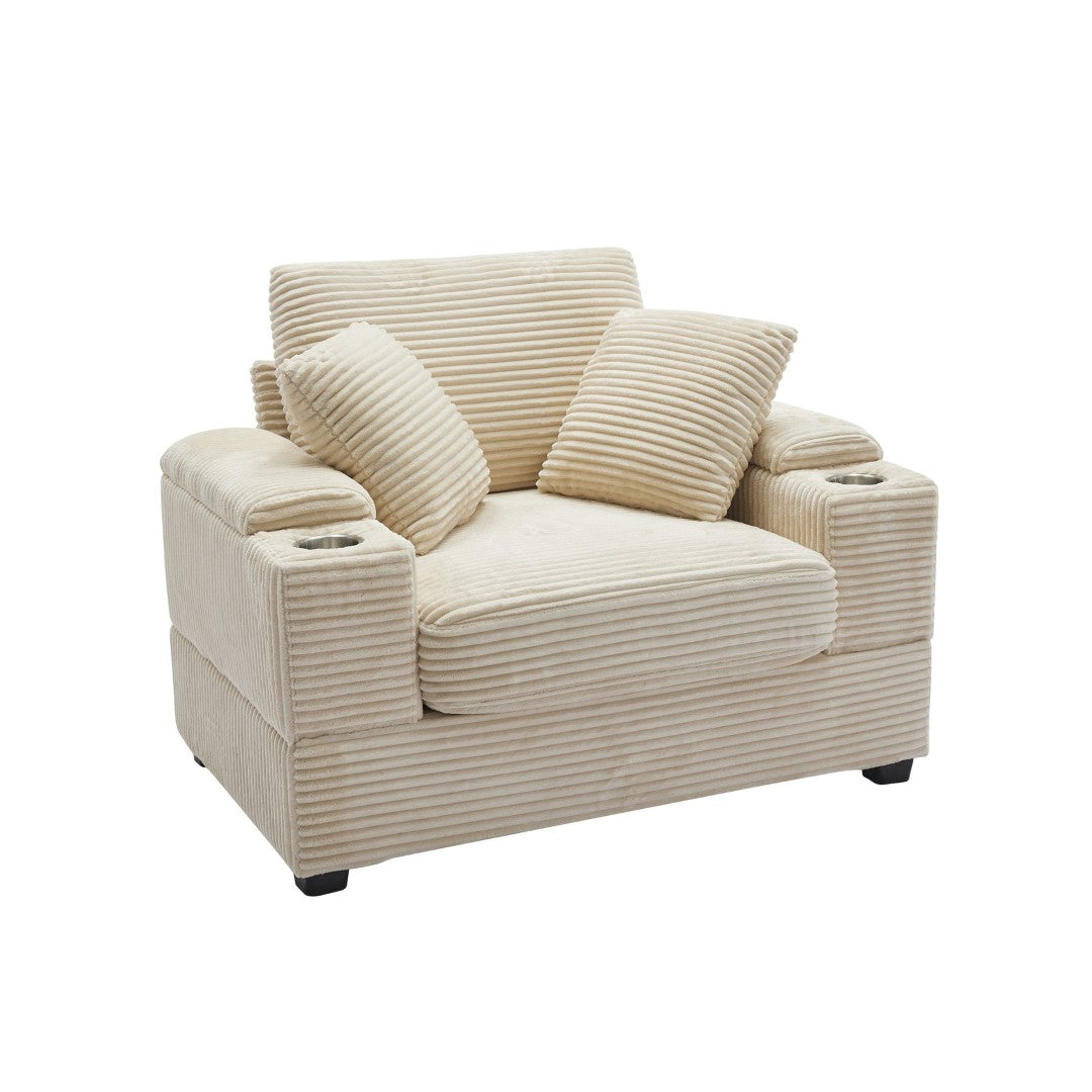 - Upholstery: Wide-stripe corduroy fabric for a soft, textured look that resists wear and adds visual warmth.