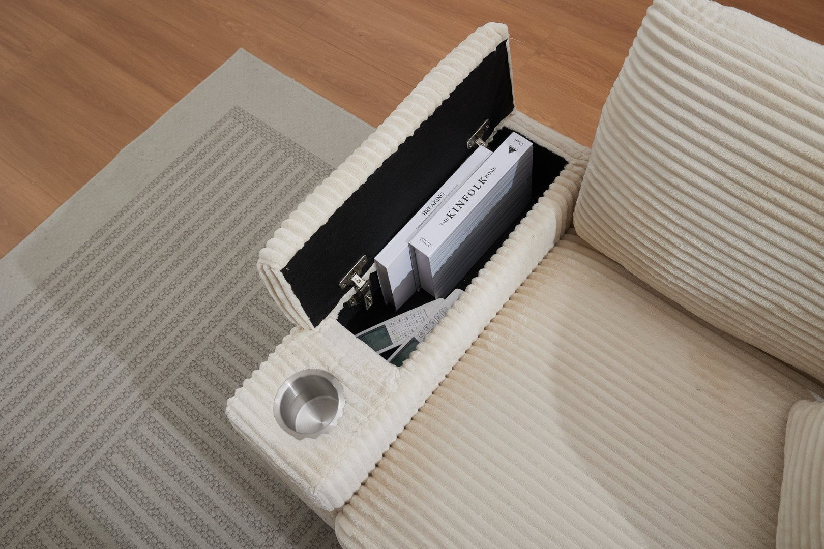 - Storage armrest design - The armrest is equipped with a large storage space, which can easily store items such as remote controls, books, headphones, etc., making the living room more tidy.