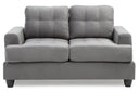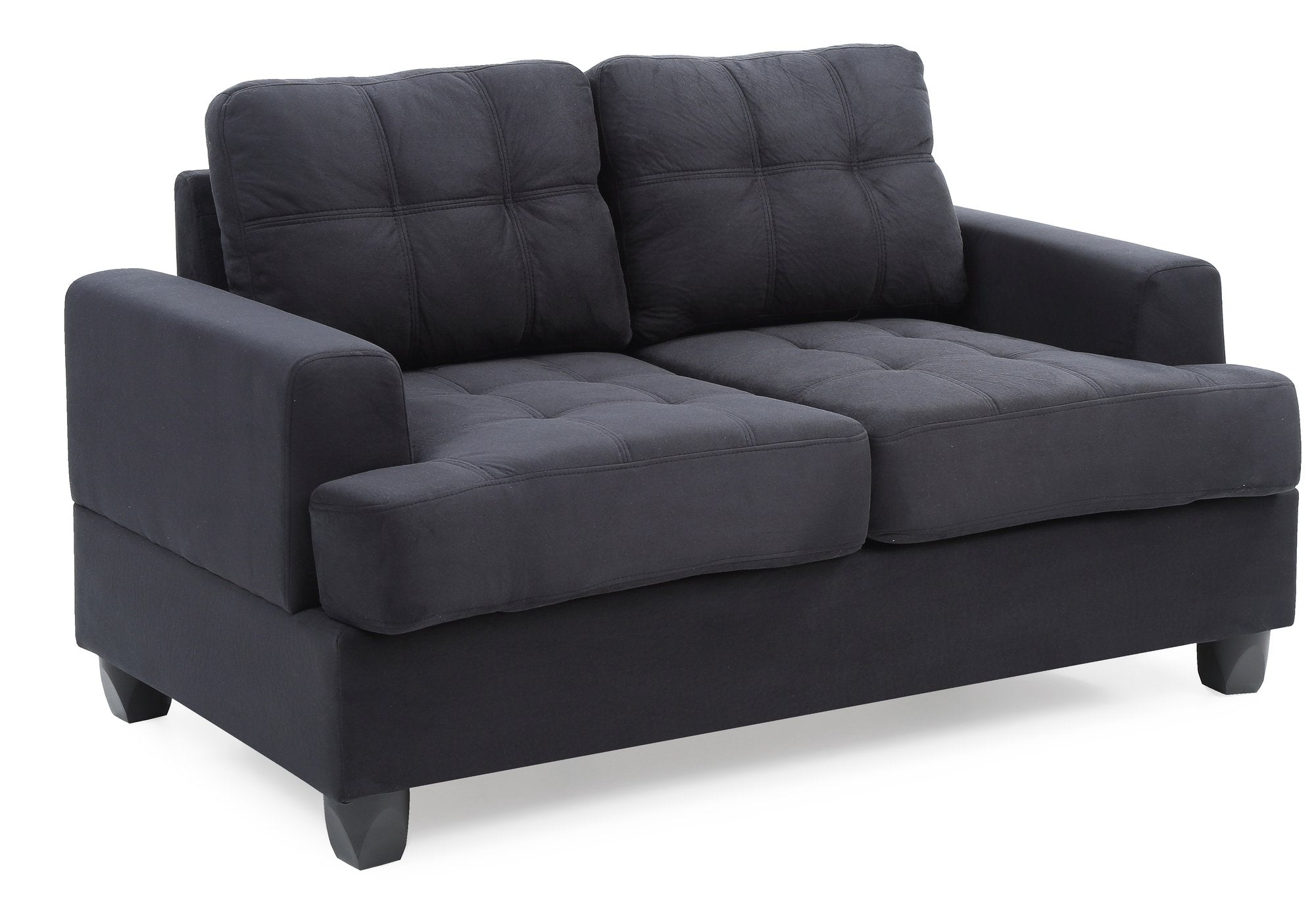 Experience everyday comfort and versatile style with this cozy transitional loveseat in gray. Designed for small spaces and relaxed gatherings, its soft microfiber upholstery and saddle arms create a welcoming spot to unwind, while the clean lines complement a range of décor from modern to classic.