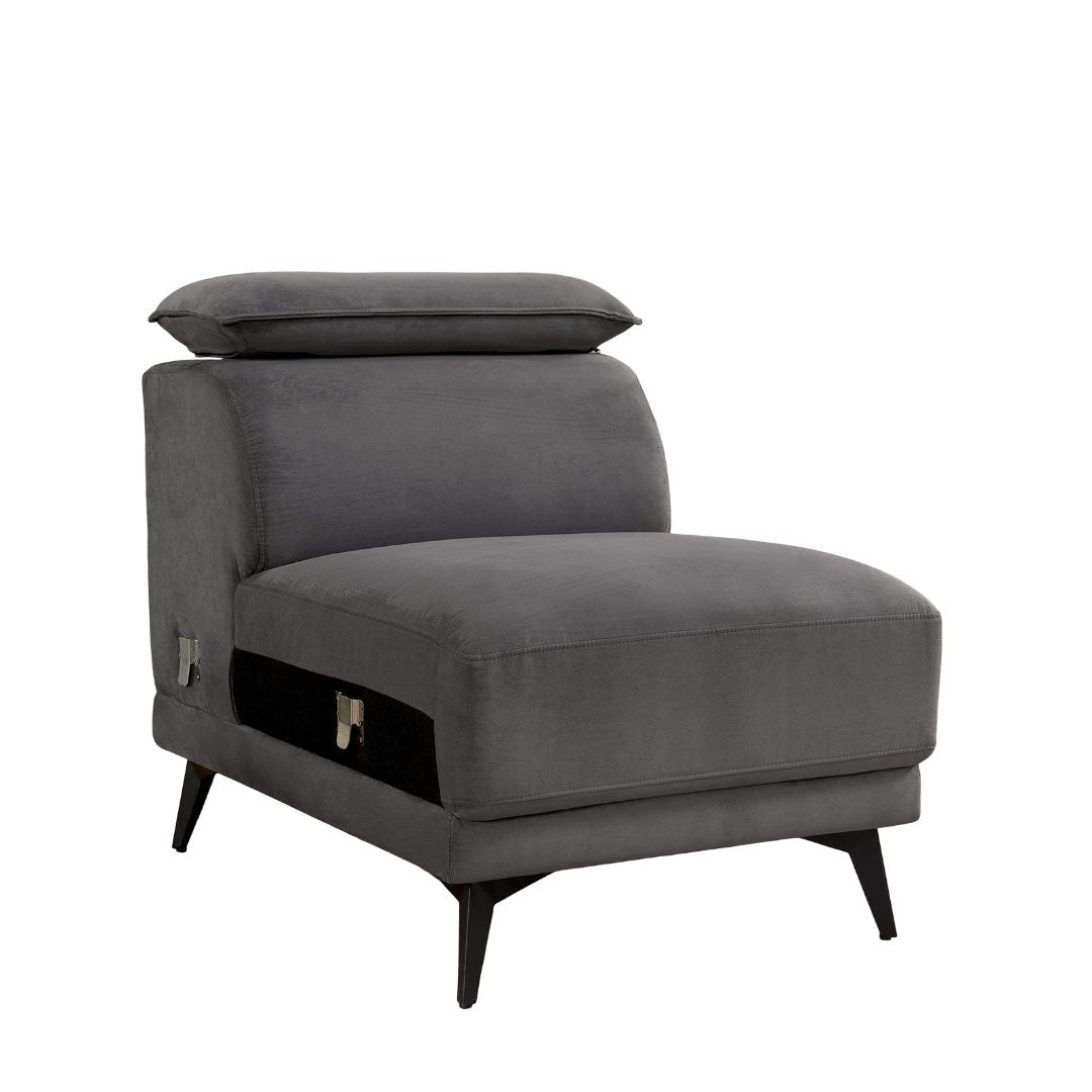Enjoy modern comfort and clean, contemporary style with this compact armless chair. Designed for everyday relaxation, it combines a plush tight-back cushion, padded pillow armrest, and adjustable headrest for personalized support — all on sleek steel legs that add durability and a refined silhouette.