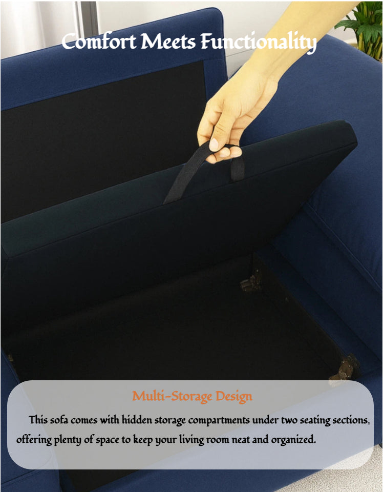 - Hidden Storage for a Clutter-Free HomeEasily lift the seat cushions to access a spacious hidden storage compartment—perfect for storing blankets, pillows, toys, or seasonal items. This 2-seater storage loveseat is ideal for apartments, condos, and small homes.