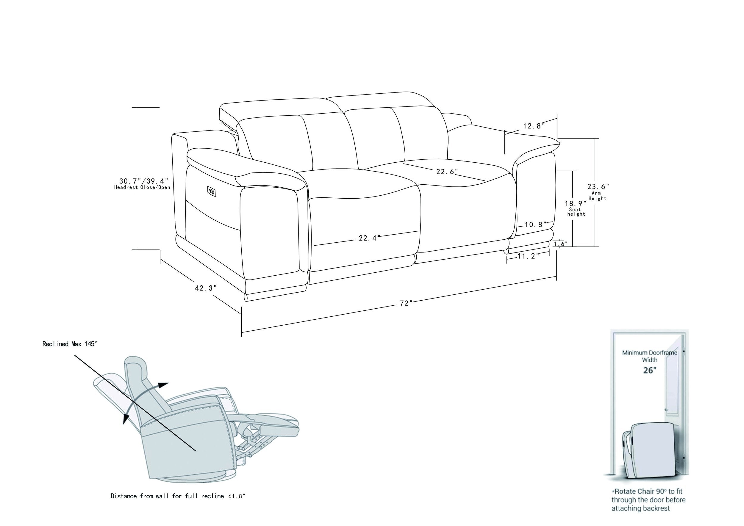 - Reclining & Power: Smooth power recliner mechanism for effortless adjustment to your preferred seating position