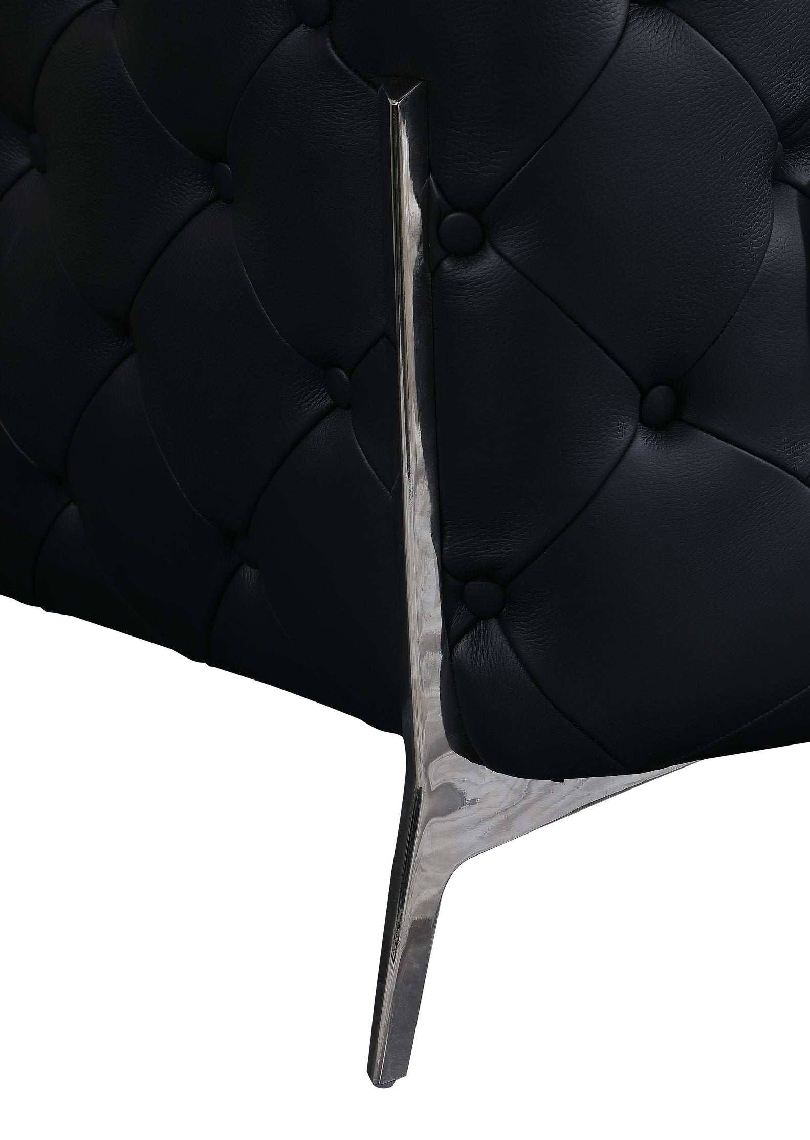 - Upholstery: Top-grain 100% Italian leather in a rich black finish for a supple feel and durable, aging beauty.