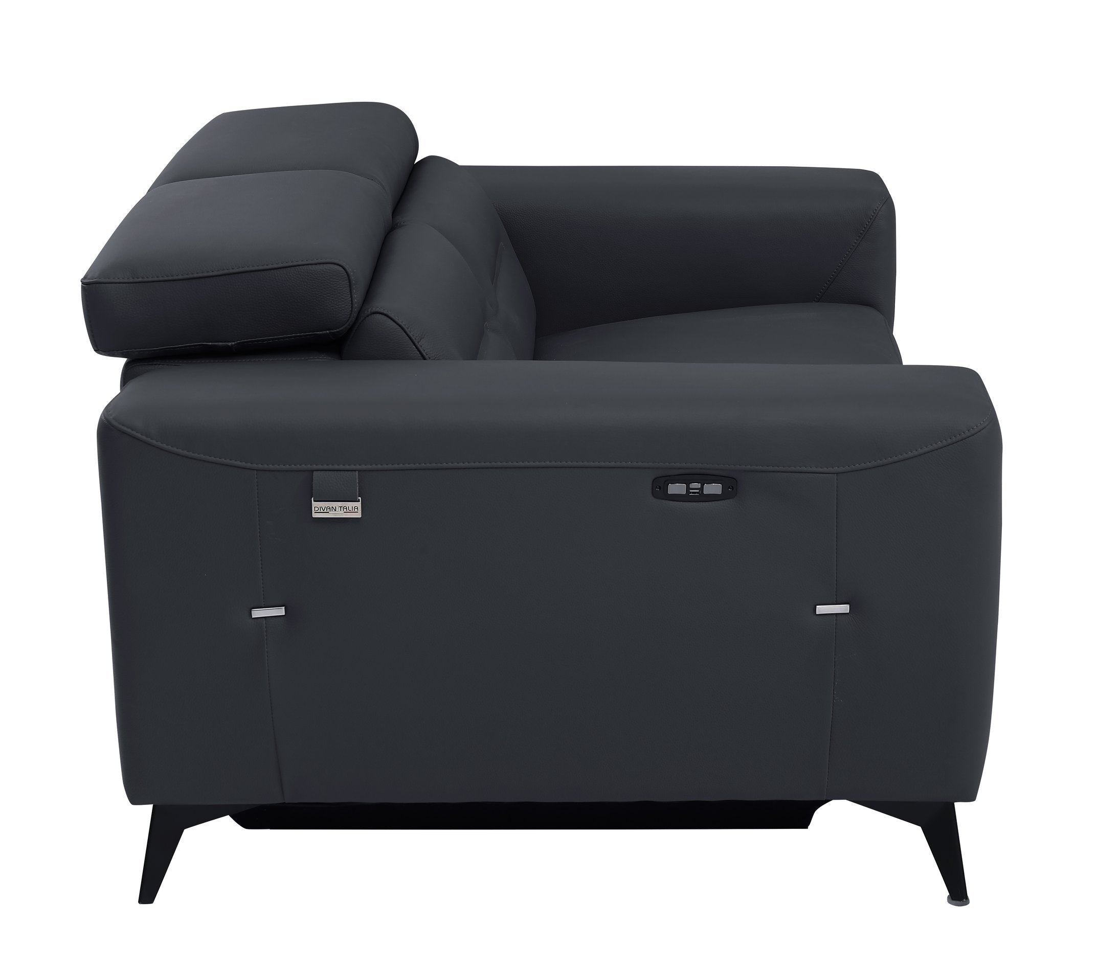 Elevate your living space with a sleek, modern loveseat that combines premium materials, ergonomic comfort, and convenient power features. Finished in dark grey top-grain Italian leather and supported by a solid Brazilian wood frame, this loveseat is designed for lasting style and everyday relaxation—ideal for contemporary homes, home theaters, or upscale offices.