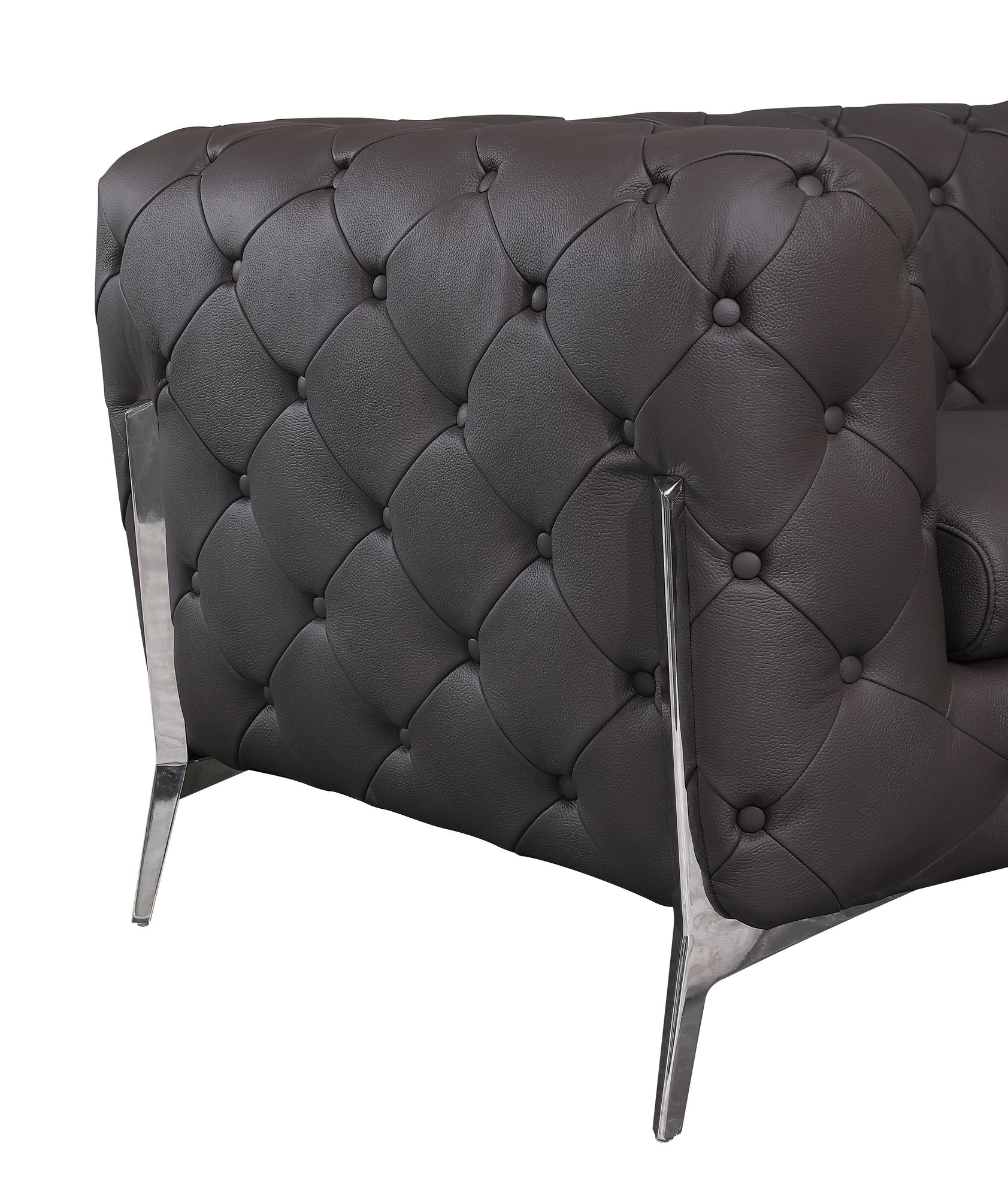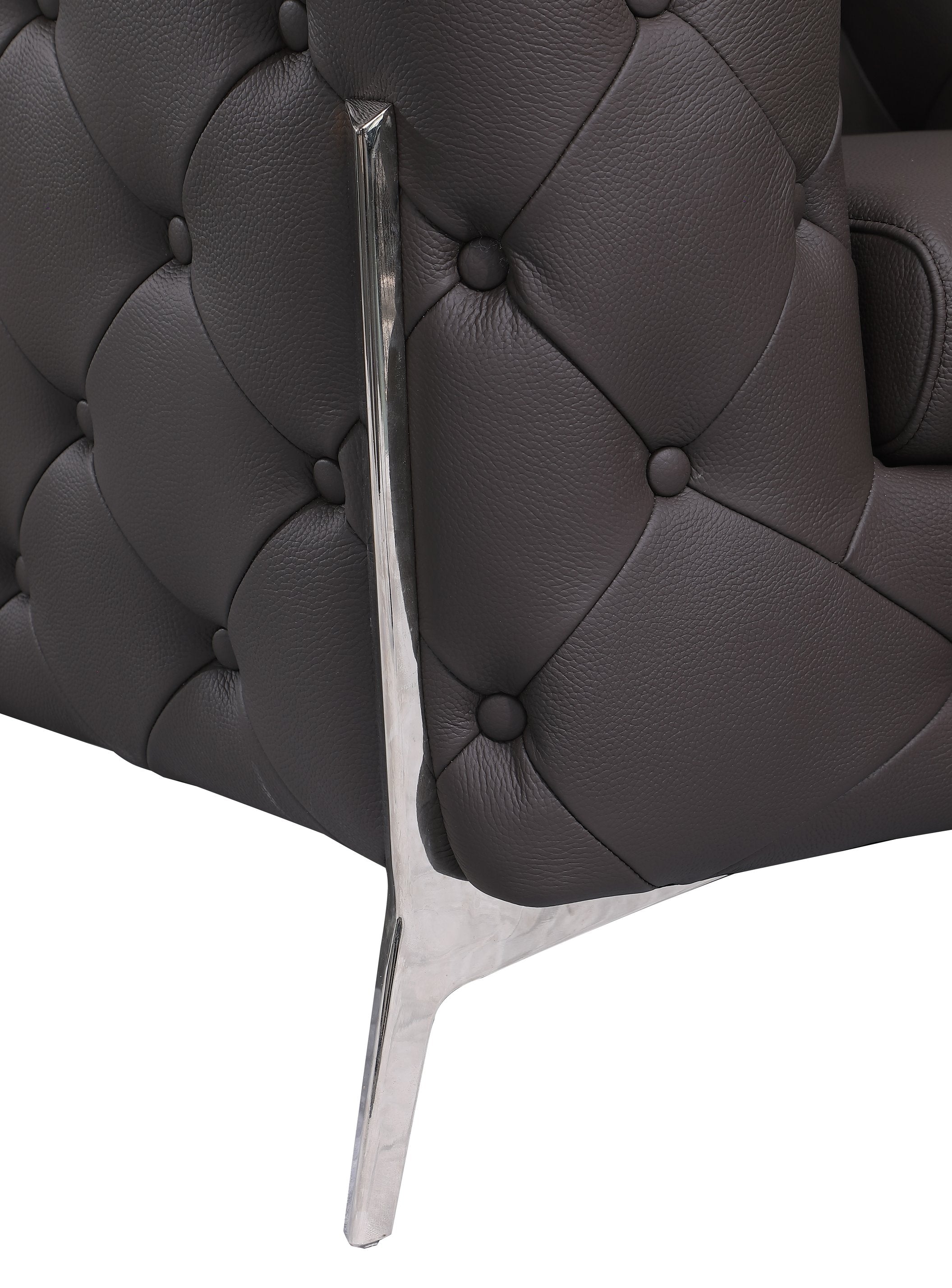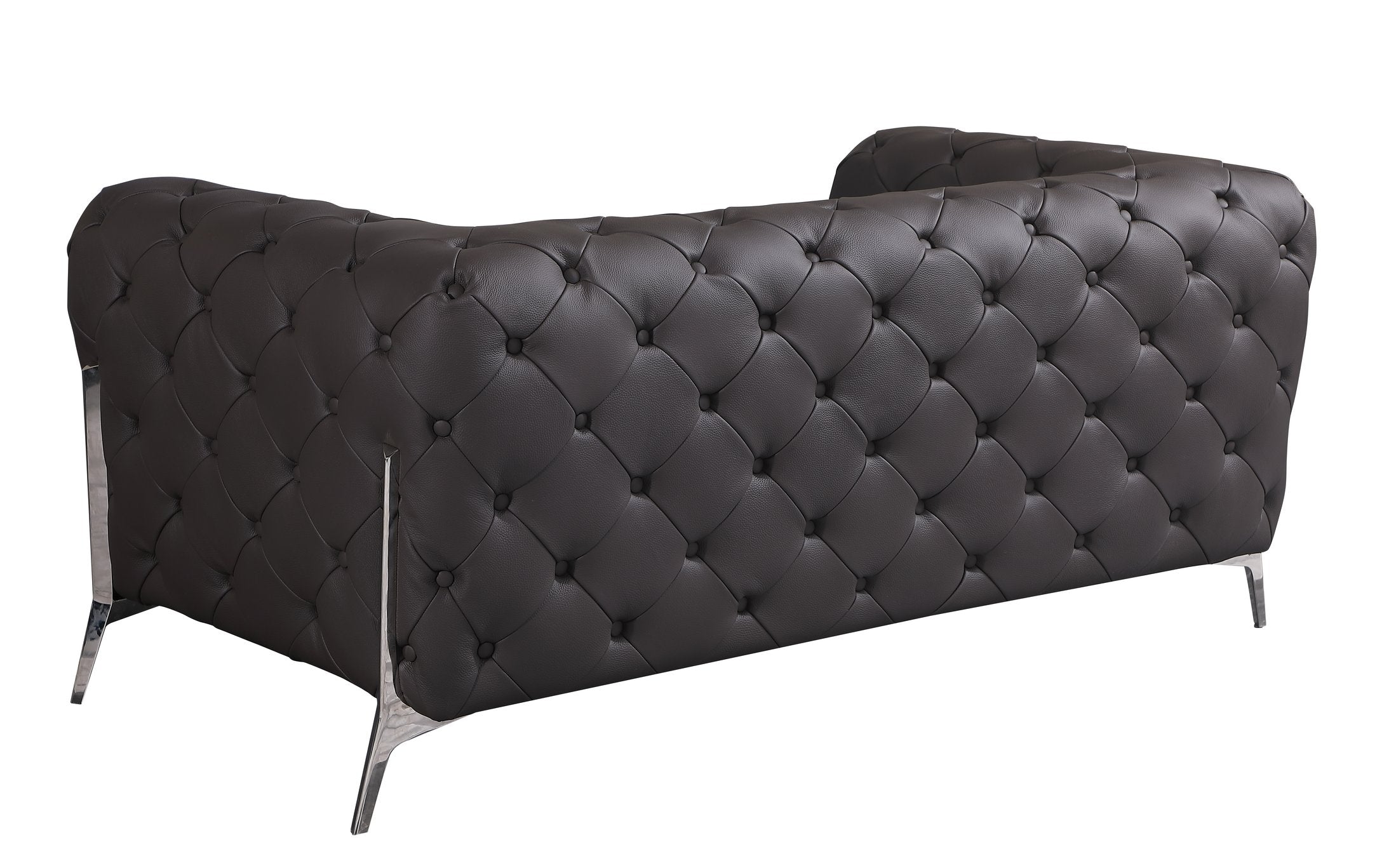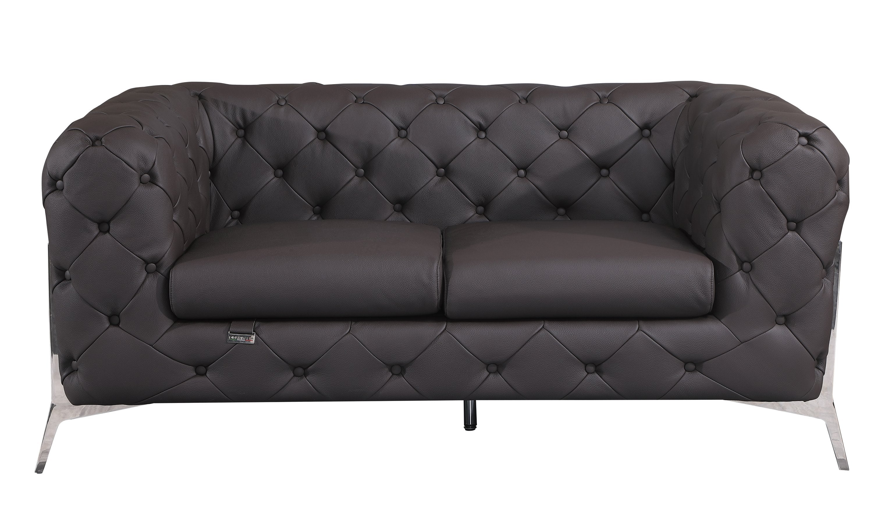Elevate your living space with this transitional loveseat, thoughtfully designed for comfort and lasting elegance. Upholstered in top-grain Italian leather and supported by a solid Brazilian wood frame and stainless-steel chrome legs, it combines premium materials with contemporary styling for everyday luxury.