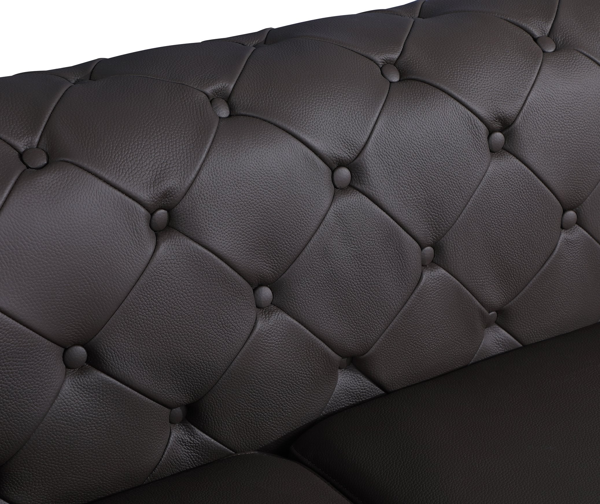 - Upholstery: 100% top-grain Italian leather in rich brown—durable, soft, and develops a beautiful patina over time