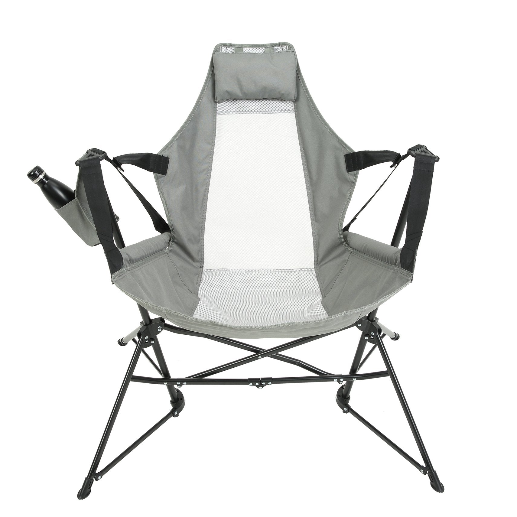 Relax in comfort anywhere with this portable hammock-style camping chair—designed to combine the lounging feel of a hammock with the stability and convenience of a folding camp recliner. Lightweight yet sturdy, the chair features an adjustable reclining strap system, breathable fabric, and thoughtful accessories (pillow and cup holder) to keep you comfortable on the lawn, at the campsite, or on the patio. This two-piece set packs down compactly and includes a carry bag for easy travel and storage.