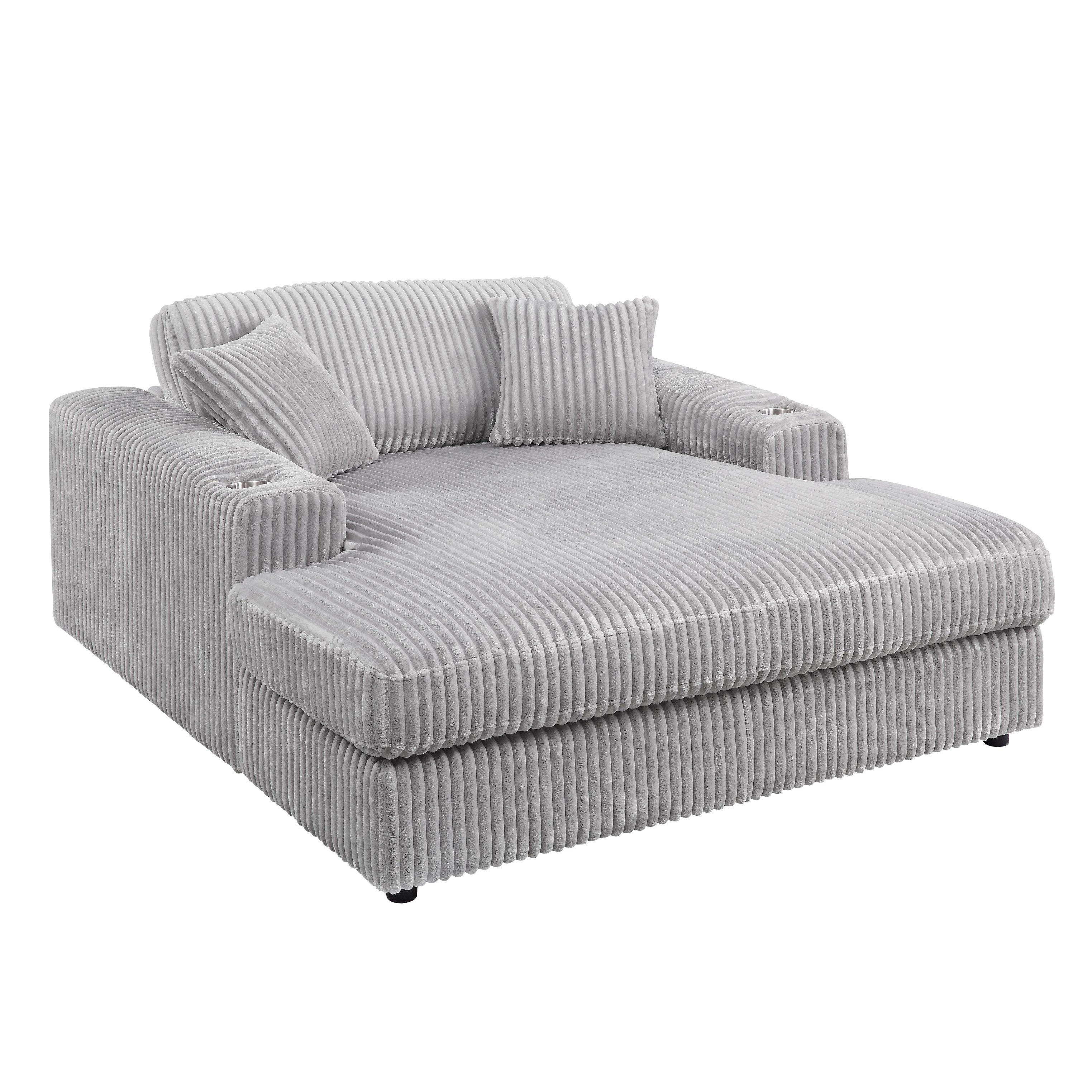 Invite modern comfort into your living space with this light gray corduroy chaise, designed for everyday lounging and stylish adaptability. Soft corduroy upholstery and supportive pocket-coil seating combine with practical features like removable covers and included accent pillows to deliver a cozy, low-maintenance addition to apartments, family rooms, or media areas.