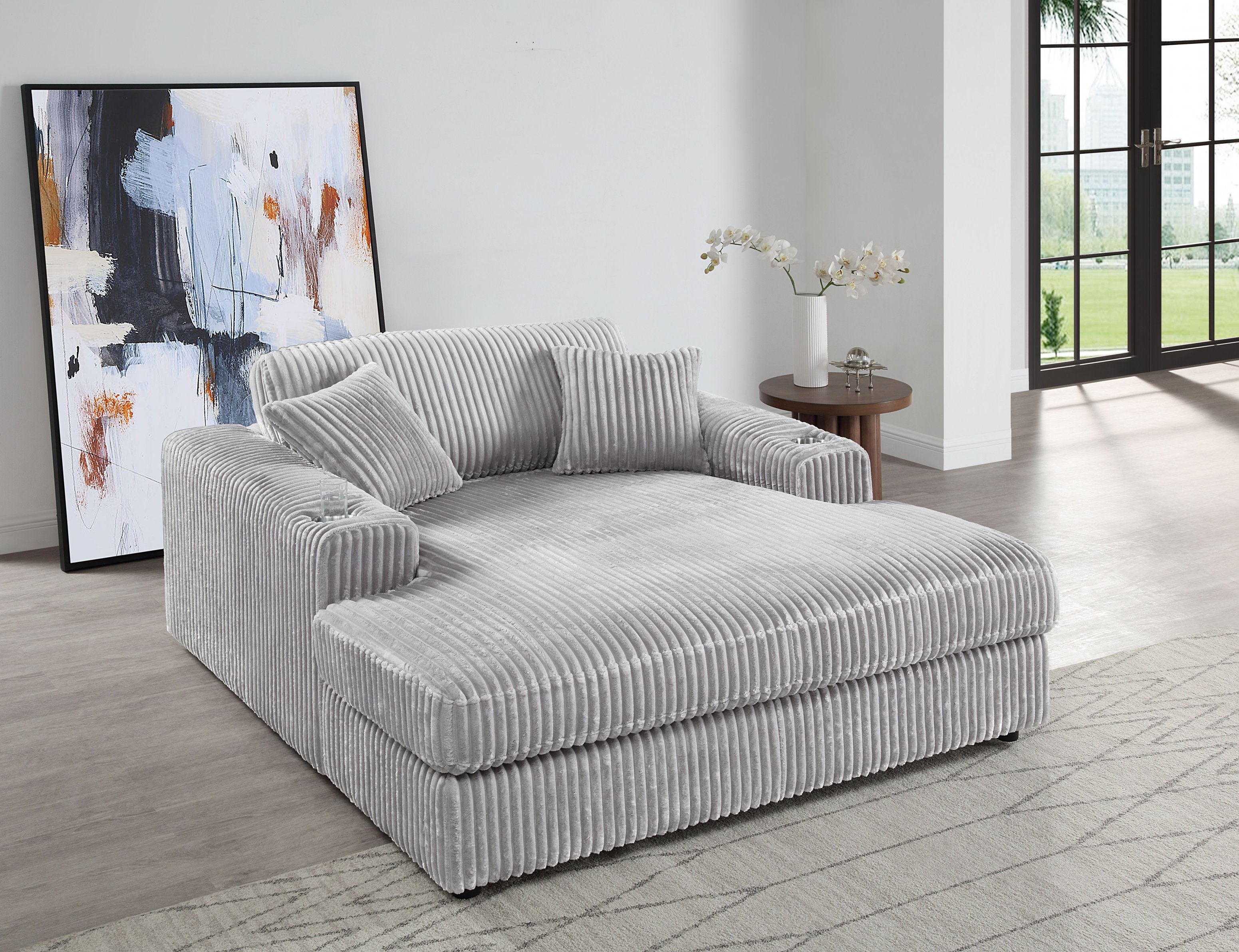 - Included Accessories: Two accent pillows and a built-in cup holder for convenience.