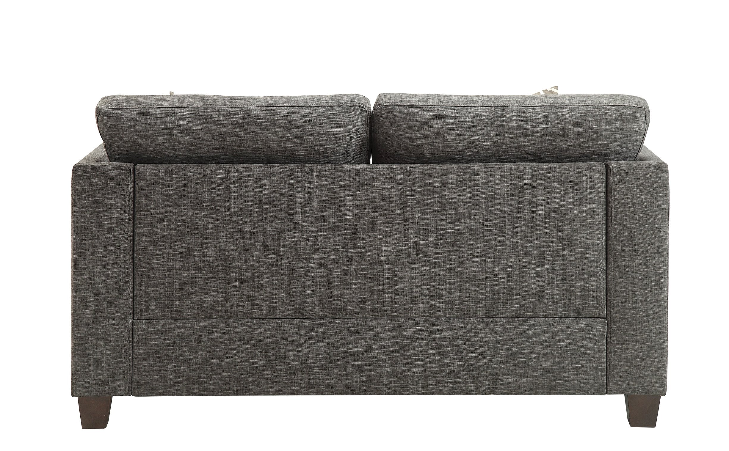 Sink into modern comfort with this light charcoal loveseat, thoughtfully designed for style and everyday relaxation. Its clean, buttonless tufting gives a contemporary edge while four plush pillows provide extra lumbar and head support, making it perfect for reading, conversation, or cozy evenings at home. Durable materials and a neutral finish ensure this piece complements a range of décor styles.