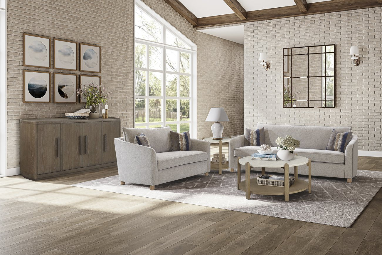 Invite comfort and understated elegance into your living space with this sand-colored upholstered loveseat. Thoughtfully constructed for everyday use, it pairs supportive seating with soft, durable materials to create a cozy focal point for lounging or conversation.