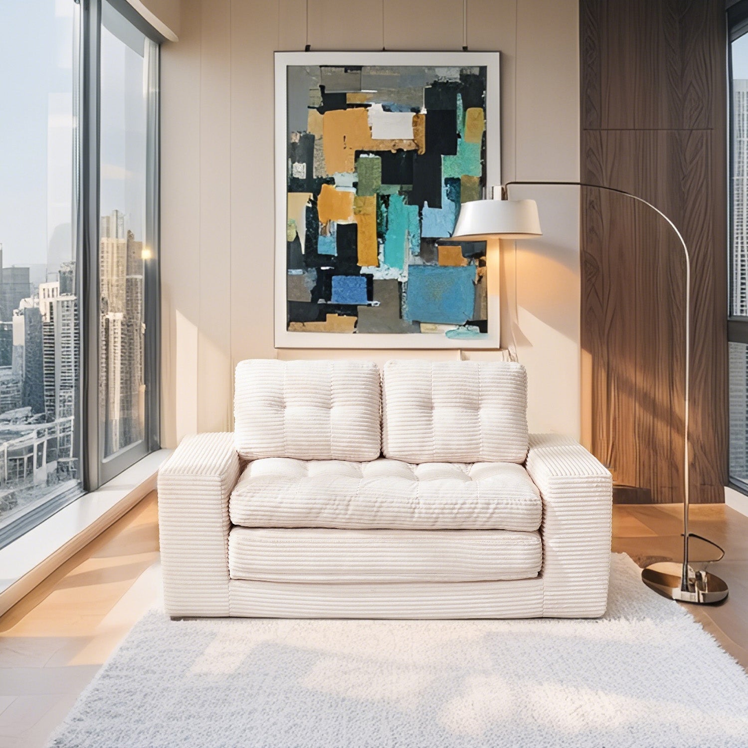 Discover versatile comfort designed for small spaces: this convertible loveseat transforms effortlessly from a plush 2-seater into a cozy sleeper, delivering cloud-like support with no hard frame to interfere. Wrapped in soft corduroy (corded velvet) and filled with high-resilience memory foam, it’s an ideal solution for apartments, home offices, guest rooms, or anywhere you need a tasteful, space-saving seating and sleeping option that arrives ready to use.