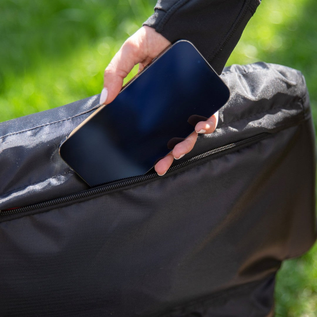 - Storage and convenience: Dual storage pockets (single right side pocket and left side zippered removable dual pocket/cup holder) plus backpack straps for hands-free transport and slim profile for vertical or horizontal storage.