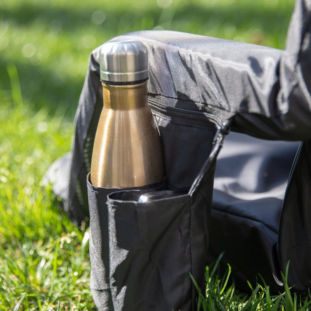 - Comfort and support: Thickly padded back, seat and armrests with heavy-duty foam for extended comfort on bleachers or at the campsite.