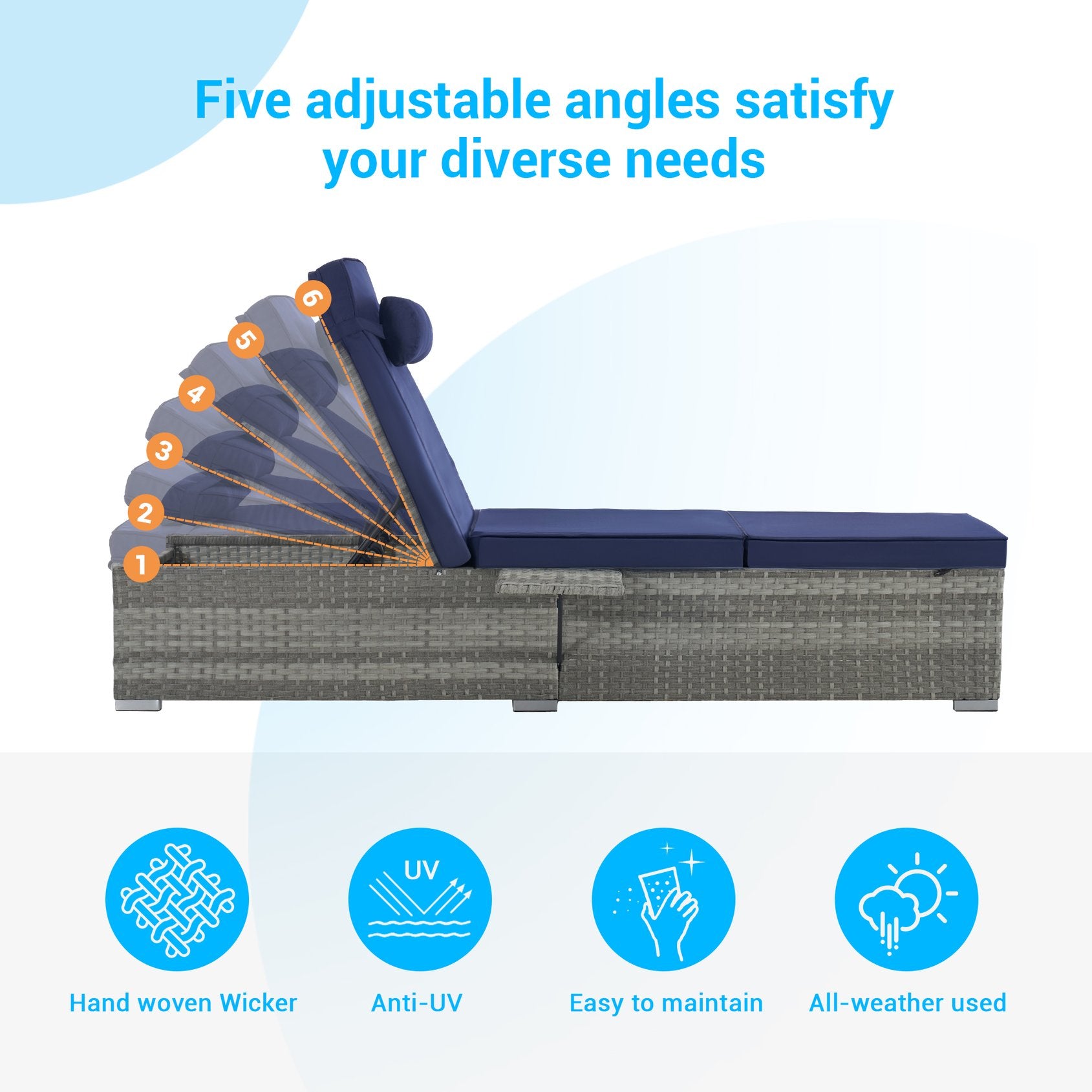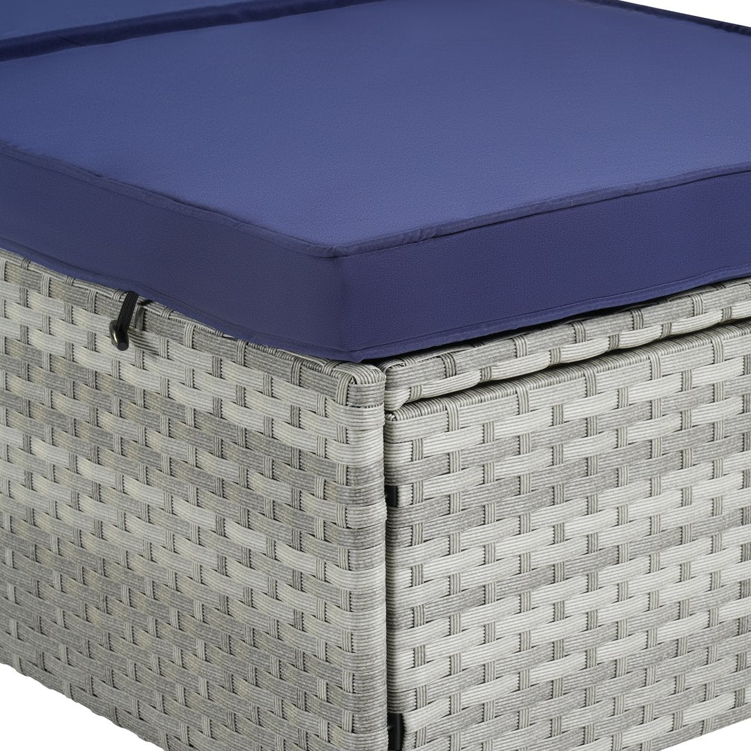 Relax and soak up the sun with this stylish and durable outdoor chaise lounge—designed for comfort, low maintenance, and all-weather performance. Crafted with premium PE rattan over a rust-resistant steel frame and finished with a deep-blue padded cushion, this lounge combines contemporary looks with practical features for patios, decks, gardens, balconies, or commercial outdoor spaces.