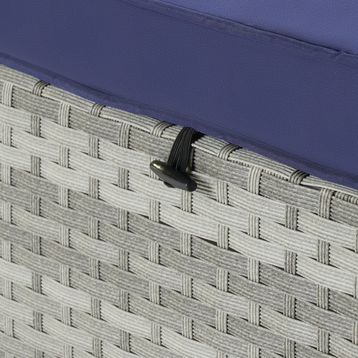 - Finish & color: Gray rattan with deep-blue cushion for a modern, neutral palette that coordinates with most outdoor decor.