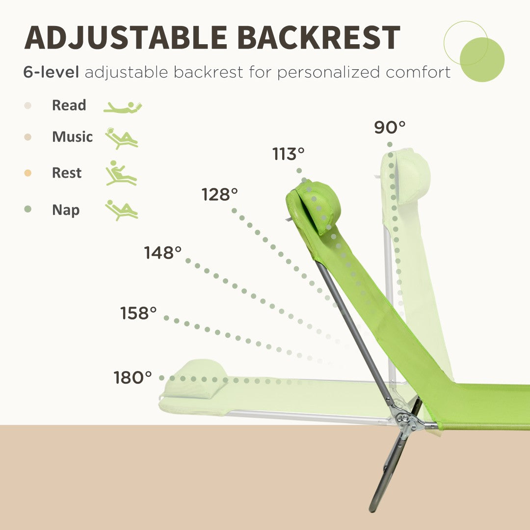 - Adjustable Recline: 6-position backrest (90°–180°) lets you sit upright, lounge, or lie fully flat for tanning or napping.