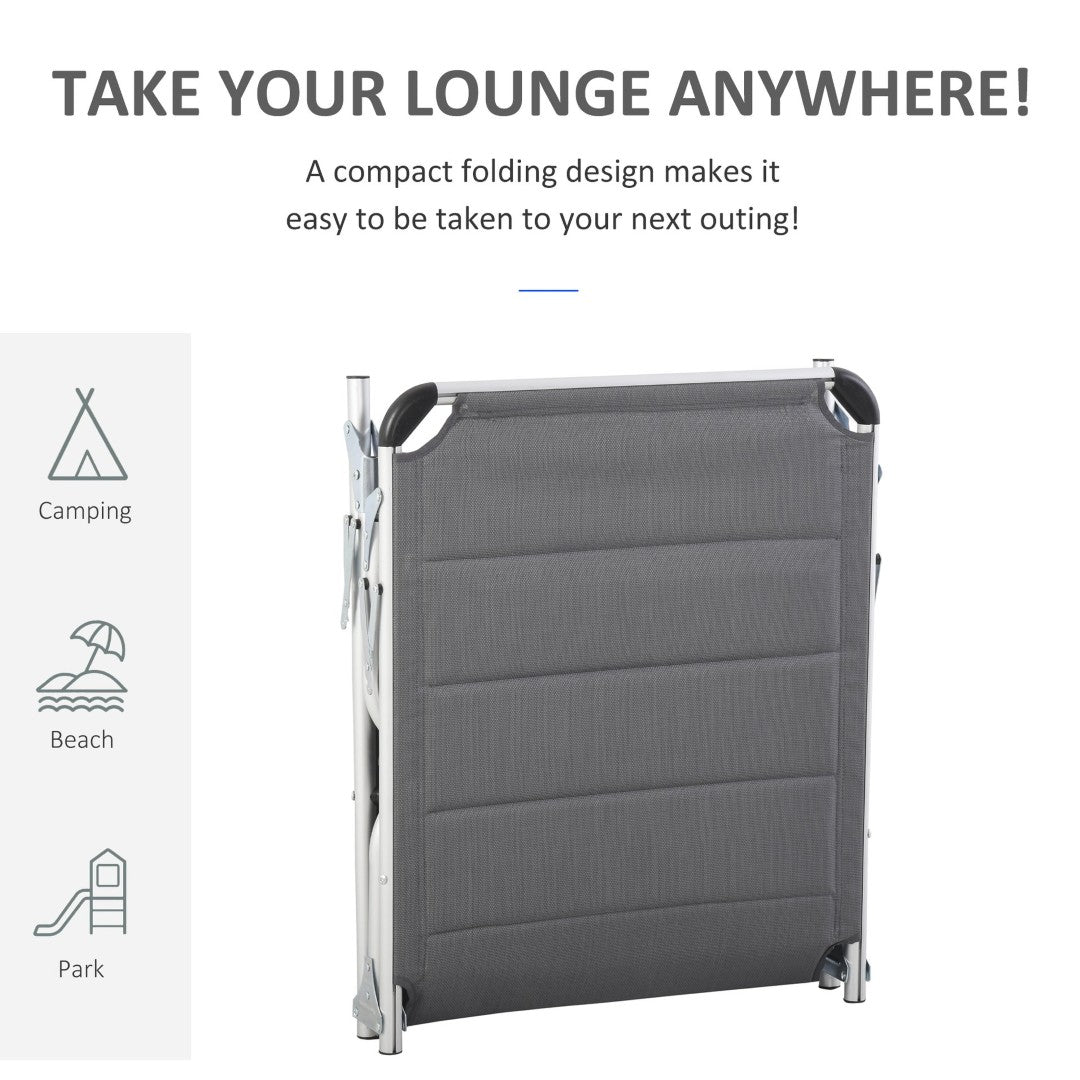 Enjoy sun-soaked relaxation with this versatile, foldable chaise lounge — designed for poolside chilling, beach days, patio naps, and camping comfort. Padded for comfort with a supportive headrest and a durable aluminum frame, it offers multiple reclining positions and compact storage to take relaxation wherever you go.