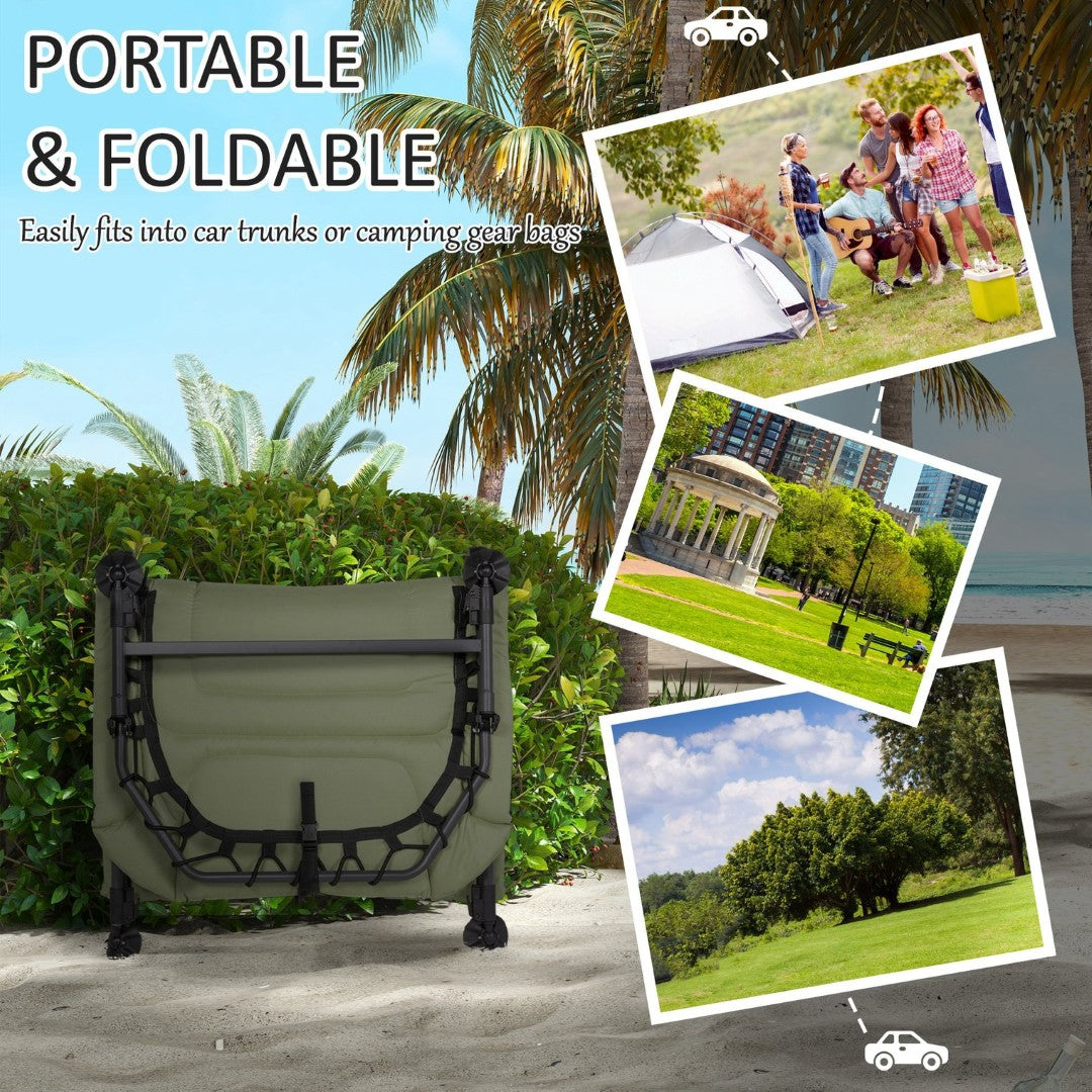 Enjoy comfortable outdoor lounging and restful sleep with this versatile folding camping cot. Designed for durability and convenience, it features an adjustable 180° reclining backrest, soft padded cushions with a headrest, and a rugged build that holds up to heavier use — ideal for camping, backyard naps, tailgates, and guest sleeping.