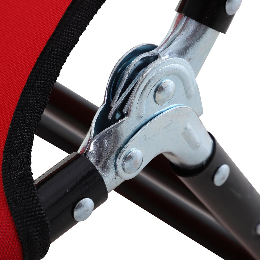 - Finish & Color: Weather-safe powder finish with vibrant red fabric for a stylish outdoor look.
